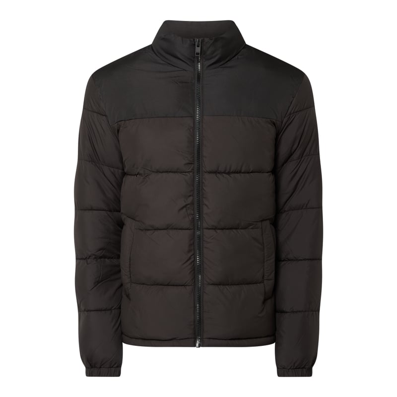 Kurtka pikowana męska JACK & JONES, Wodoodporny materiał, Prosty krój , Dwukolorowy design , Stójka, Zamek błyskawiczny , Elastyczne mankiety, Wpuszczane kieszenie z zatrzaskiem, Regulowany dół, Detal z logo , Watowanie , Długość tyłu w rozmiarze M: 69 cm, Szerokość ramion w rozmiarze M: 47 cm, Długość rękawa w rozmiarze M: 64,5 cm