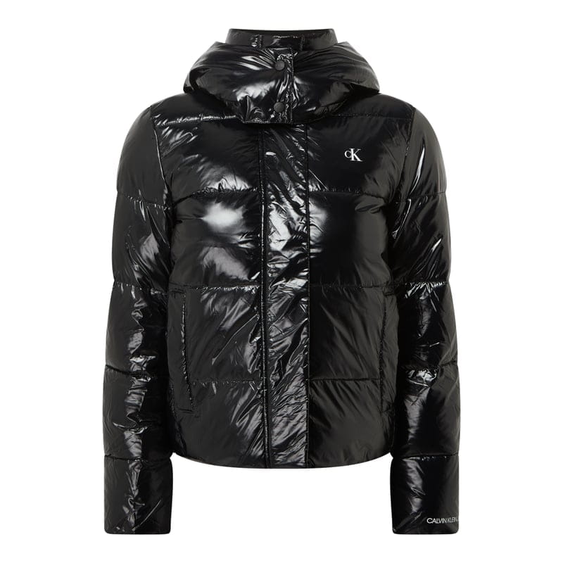 Kurtka pikowana damska Calvin Klein Jeans, Poliamid z recyklingu, Prosty krój , Połyskujący efekt , Stójka z odpinanym kapturem , Kryty zamek błyskawiczny z plisą zapinaną na zatrzaski , Wpuszczane kieszenie z zatrzaskiem , Pikowanie , Nadruk z logo , Watowanie , Długość tyłu w rozmiarze S: 57 cm , Szerokość ramion w rozmiarze S: 39 cm , Długość rękawa w rozmiarze S: 63 cm