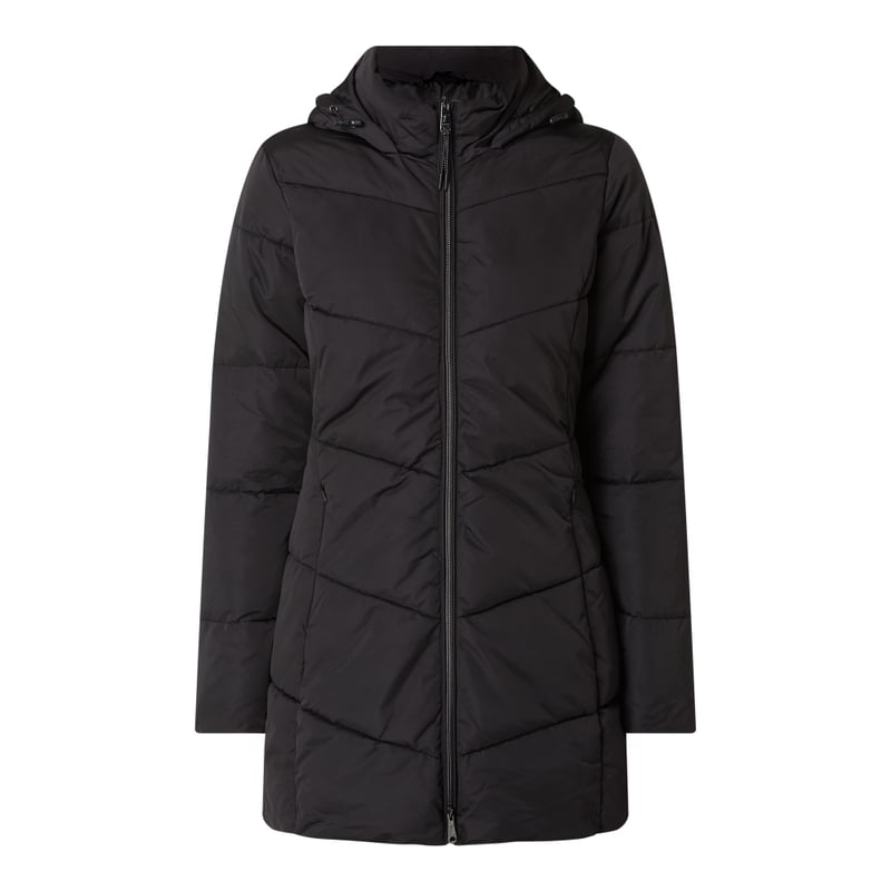 Kurtka pikowana damska TOM TAILOR, Wodoodporny materiał, Wąski krój, Stójka z kapturem , Zamek błyskawiczny , Kieszenie zapinane na zamek błyskawiczny, Aplikacja z logo , Pikowanie , Watowanie , BIONIC-FINISH®ECO, Ocieplenie DuPont™ Sorona®, Długość tyłu w rozmiarze S: 82 cm , Szerokość ramion w rozmiarze S: 42 cm , Długość rękawa w rozmiarze S: 64 cm
