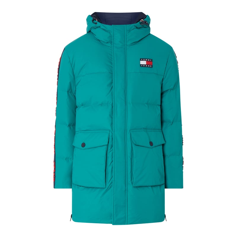 Kurtka puchowa męska Tommy Jeans, Wytrzymały materiał , Prosty krój, Kaptur, Kryty zamek błyskawiczny dwustronny, Plisa z zatrzaskami, Kieszenie z patką na guzik , Wpuszczane kieszenie , Zamki błyskawiczne z boku, Pasek z logo , Wypełnienie kaczym puchem i pierzem , Długość tyłu w rozmiarze M: 86 cm, Szerokość ramion w rozmiarze M: 48 cm , Długość rękawa w rozmiarze M: 65 cm