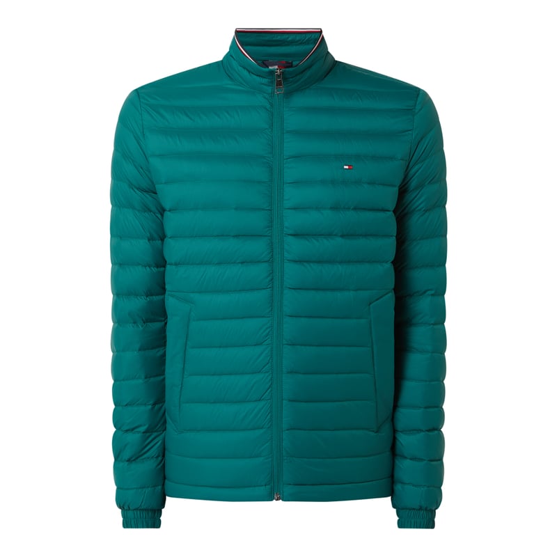 Kurtka puchowa męska Tommy Hilfiger, Wytrzymały materiał, Prosty krój, Stójka, Zamek błyskawiczny, Wpuszczane kieszenie, Elastyczne mankiety, Logo, Wypełnienie kaczym puchem i pierzem, Długość tyłu w rozmiarze M: 69 cm, Szerokość ramion w rozmiarze M: 44 cm, Długość rękawa w rozmiarze M: 67 cm