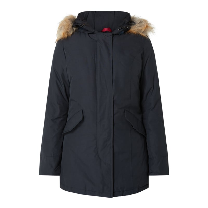 Kurtka puchowa damska Canadian Classics, Wytrzymały materiał, Prosty krój , Stójka, Kaptur z odpinanym sztucznym futrem, Kryty zamek błyskawiczny z plisą na guziki , Kieszenie z patką, Detal z logo , Wypełnienie puchem i pierzem, Długość tyłu w rozmiarze S: 76 cm, Szerokość ramion w rozmiarze S: 39 cm, Długość rękawa w rozmiarze S: 63 cm