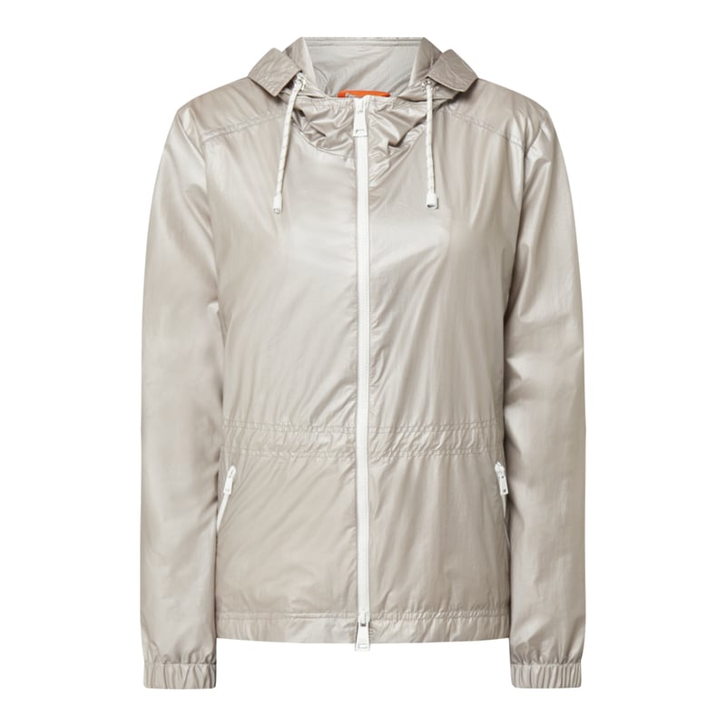 Kurtka damska Fuchs & Schmitt, Wytrzymały materiał, Prosty krój, Efekt połyskiwania , Kaptur z tunelem, Zamek błyskawiczny dwustronny , Kieszenie zapinane na zamek błyskawiczny , Elastyczne mankiety , Długość tyłu w rozmiarze 36: 63,5 cm , Szerokość ramion w rozmiarze 36: 41 cm , Długość rękawa w rozmiarze 36: 64,5 cm