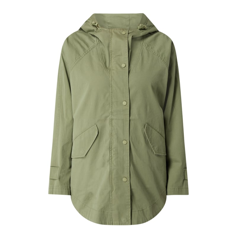 Kurtka damska MARC O'POLO , Mieszanka bawełny i elastanu , Luźny krój, Kaptur , Kryty zamek błyskawiczny z plisą zapinaną na zatrzaski , Raglanowe rękawy z patką na guzik , Wewnętrzny tunel w talii , Kieszenie z patką zapinane na zatrzask , Długość tyłu w rozmiarze 36: 78 cm