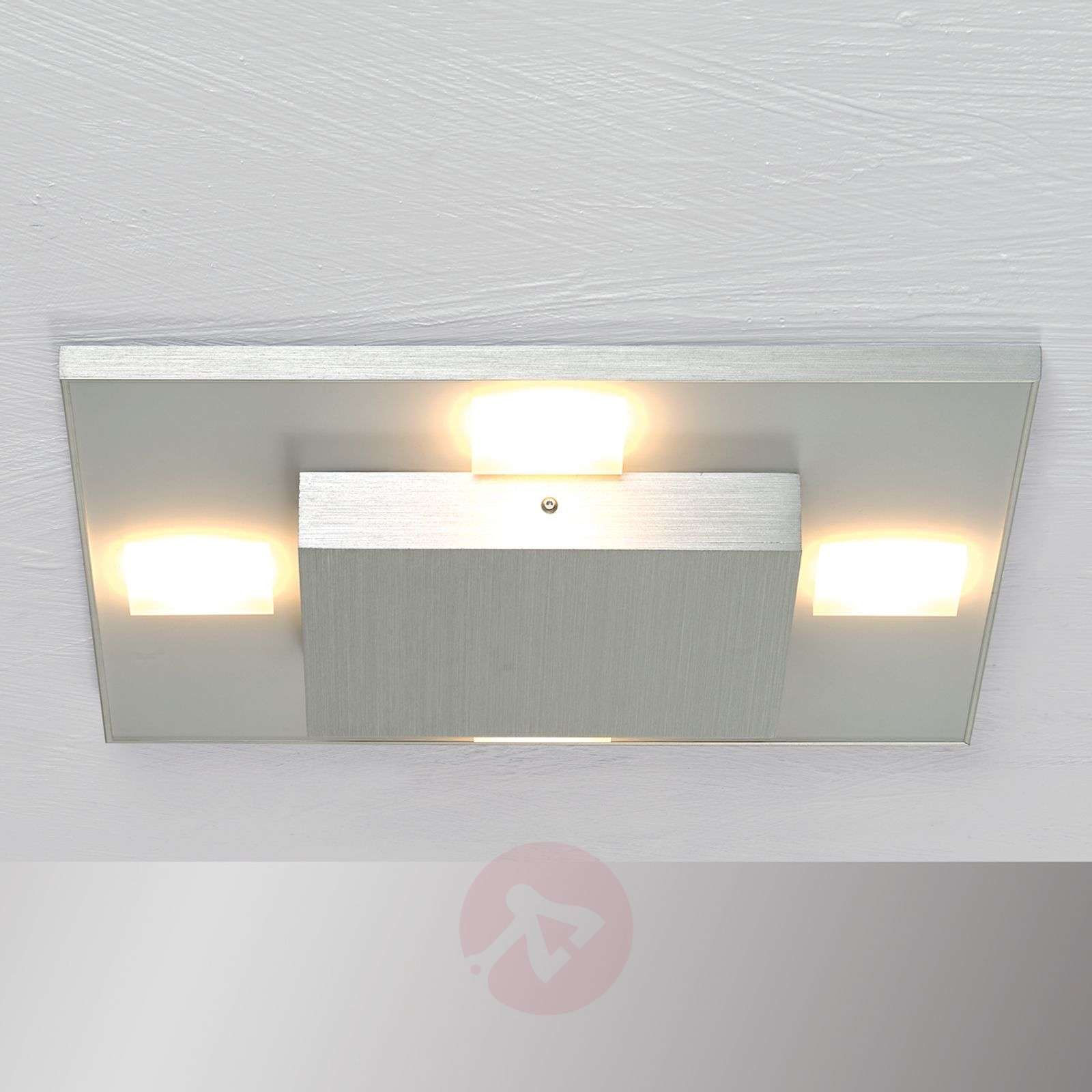 Z czterema źródłami światła – lampa sufitowa LED Slight o stylowym aluminiowym wykończeniu Kwadratowa płyta ze szlifowanego aluminium stanowi bazę tej dla stosunkowo płaskiej lampy sufitowej LED Slight. Przyłączeniowa skrzynka sufitowa, w której zamontowano części lampy związane z technologią oświetleniową, a której większa część znajduje się pomiędzy sufitem a płytą nośną, w tym modelu nałożona jest na płytę bazową, przez co wokół powstaje swego rodzaju pierścień z czterema znajdującymi się w nim diodami LED. Diody te emitują ciepłobiałe światło i mogą być przyciemniane z użyciem domowej instalacji elektrycznej (ściemniacz nie wchodzi w skład zestawu). Slight to źródło światła, które zapewnia stylowe, nowoczesne i wydajne oświetlenie ogólne w najróżniejszych typach pomieszczeń w domu. Fakt, że wszystkie lampy tego producenta są „Made in Germany”, jest nie do przecenienia. Widać to zwłaszcza gdy przyjrzymy się wykonaniu tych lamp i użytym materiałom. Klasa efektywności energetycznej: A+