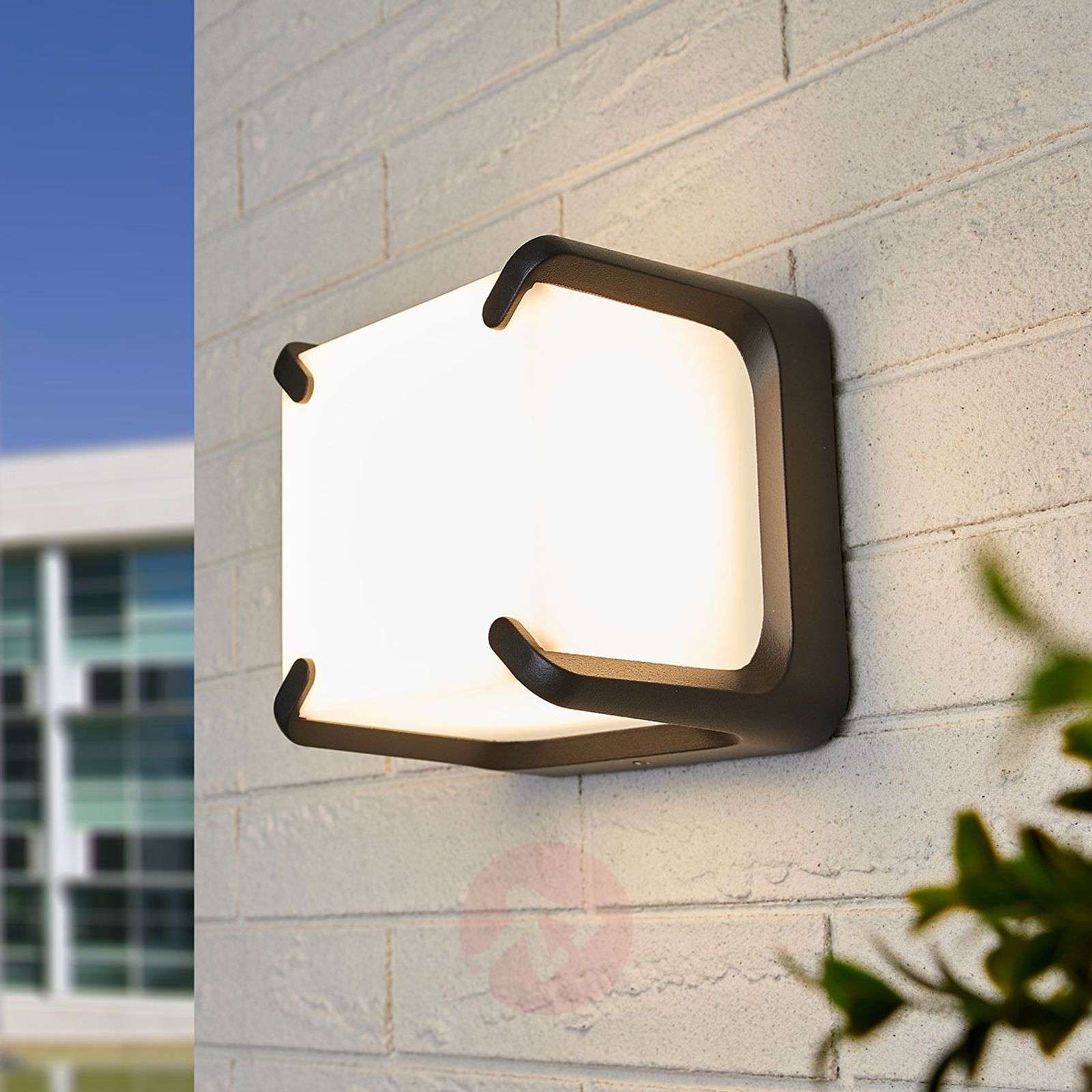 Nastrojowo świecący kinkiet zewnętrzny LED Armor Dzięki niezwykłej konstrukcji kinkiet zewnętrzny LED Armor przypomina w pewnym sensie drogocenny diament. Wykonany z satynowo-białego akrylu korpus w kształcie sześcianu otacza aluminiowa podstawa w kolorze antracytu. Skutkiem tego lampa może równomiernie jaśnieć na wszystkie strony, generując duży promień światła. Wbudowane diody LED zachęcają do odwiedzin w domu – barwa światła o odcieniu ciepłej bieli nadaje otoczeniu szczególnie przyjemny i nastrojowy charakter. Klasa efektywności energetycznej: A+