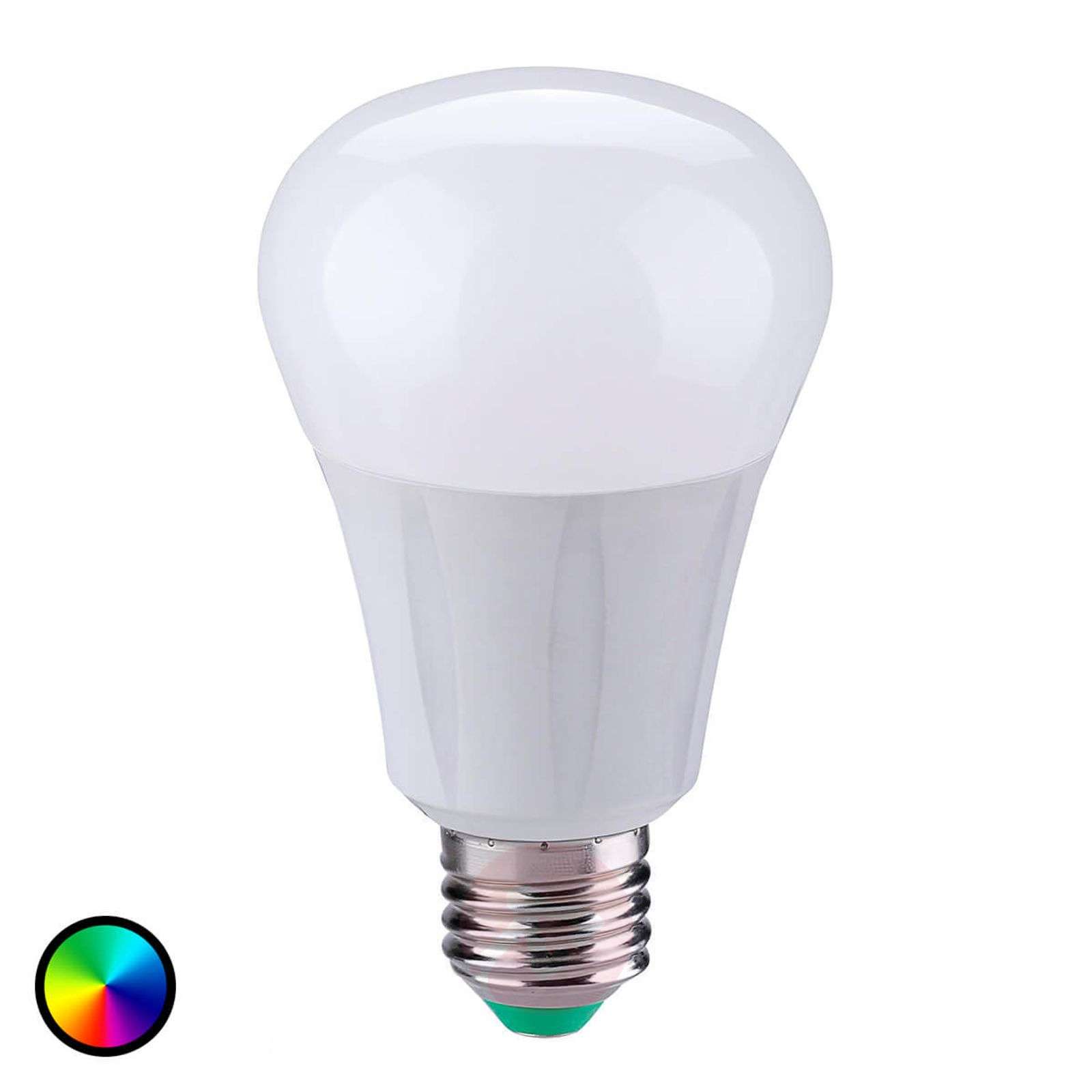 Ledowa lampa 6,7 W, E27 z funkcją zmiany koloru Funkcja zmiany kolorów w tej lampie zapewnia możliwość ustawiania koloru światła według życzeń w kolorach RGB. Wyjątkowo efektywna technika LED umożliwia ponadto oszczędność zużycia energii w klasie efektywności energetycznej A+. Dane techniczne – klasa efektywności energetycznej: A+ – wartość porównawcza: 45 W Charakterystyczna cecha – zintegrowana funkcja zmiany koloru (RGB) Klasa efektywności energetycznej: A+
