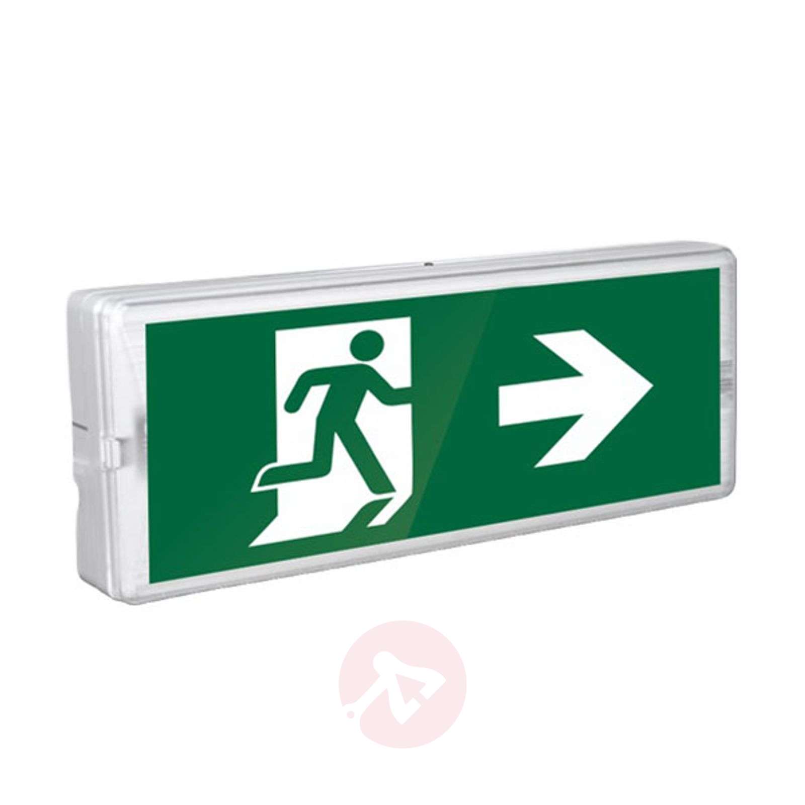 Lampa awaryjna do dróg ewakuacyjnych, do montażu na ścianie, 60 lumenów - DIN EN 60598/2/22, DIN ISO 7010 - zasięg rozpoznawania 20 metrów - 60 lumenów - akumulator Ni-CD, nominalny czas pracy 3 godziny - akumulator Ni-CD, nominalny czas pracy 3 godziny - zawiera wszystkie piktogramy - obudowa z tworzywa sztucznego, kolor biały - tryb gotowości/załączenia na stałe Klasa efektywności energetycznej: A+