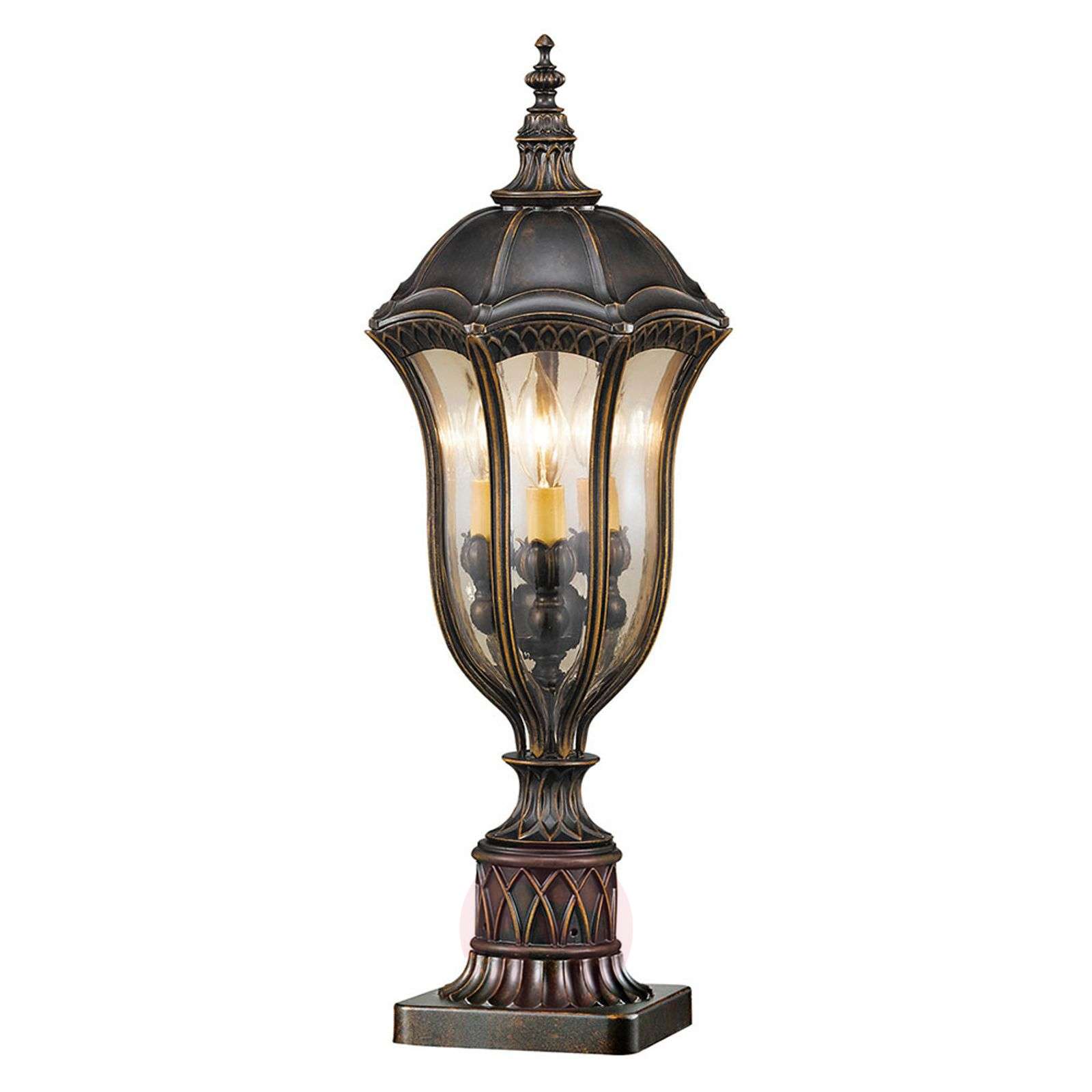 Lampa cokołowa Baton Rouge – stylowe oświetlenie zewnętrzne Lampa cokołowa Baton Rouge przypomina znaną dawniej latarnię uliczną. Materiał, z którego wykonano lampę, to ciśnieniowy odlew aluminium. Zapewnia on dużą wytrzymałość lampy. Na słupku latarni znajduje się głowica o pięknym kształcie wraz z ozdobną pokrywą. Sześć szklanych okienek przepuszcza nastrojowe światło. Baton Rouge jest produkowana zgodnie z wysokimi standardami jakościowymi i niezawodnie zapewnia bezpieczeństwo, mając w sobie nostalgiczny urok. Klasa efektywności energetycznej: A++