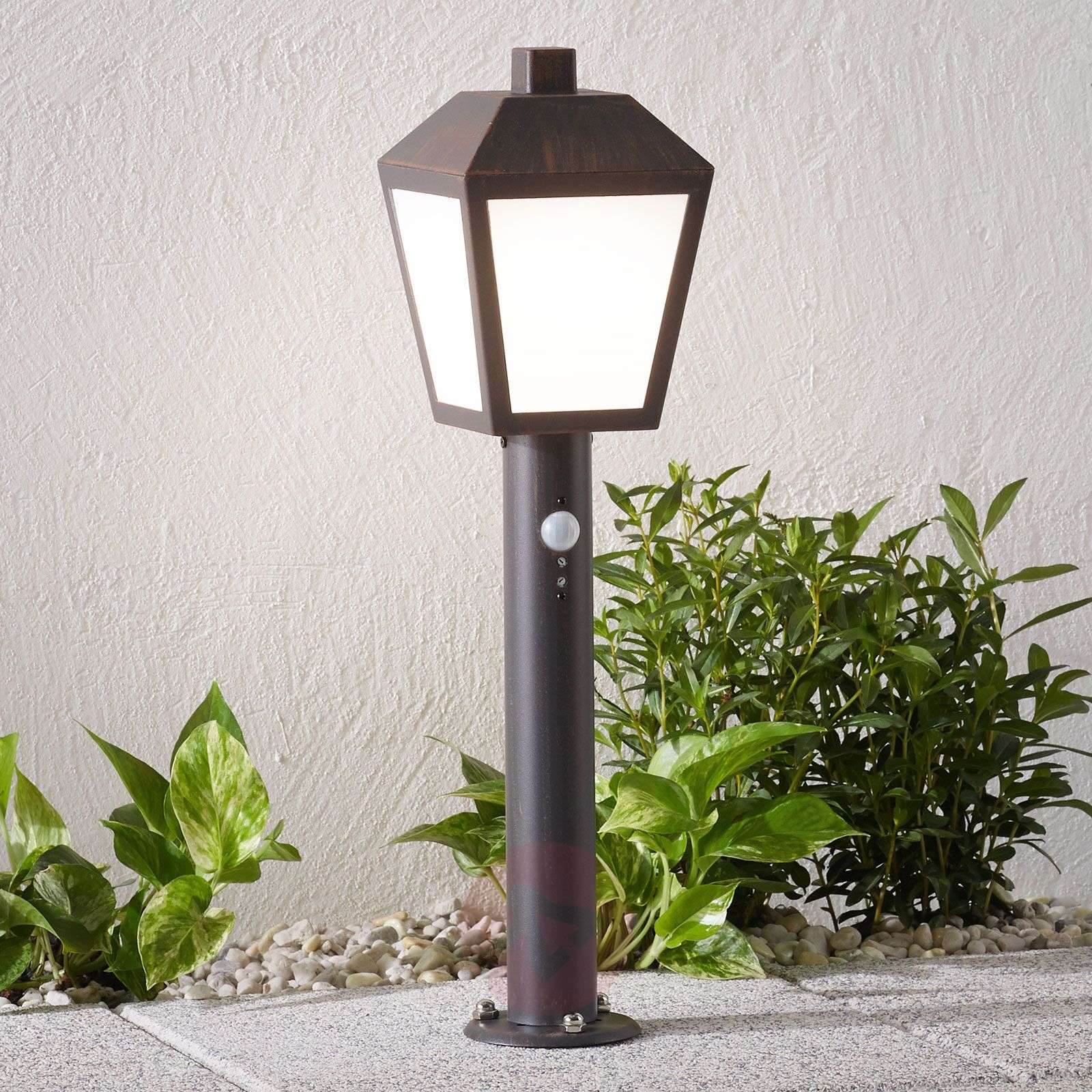 Słupek oświetleniowy Bendix do rustykalnie urządzonych terenów zewnętrznych: z diodami LED i czujnikiem ruchu Wzornictwo jest niezwykle klasyczne dzięki kształtowi latarni i przekonuje „używanym” wyglądem w kolorze miedzi. Jednocześnie wnętrze słupka oświetleniowego Bendix kryje w sobie nowoczesną lampę pod dwoma względami. Oświetlenie zewnętrzne jest generowane poprzez światło LED, dzięki czemu jest trwałe i ekonomiczne. Posiada również zintegrowany czujnik ruchu, który zapewnia bezpieczeństwo i oszczędność kosztów. Można go ustawić na różne okresy czasu, dzięki czemu słupek oświetleniowy LED Bendix może świecić tylko wtedy, gdy światło jest faktycznie potrzebne. Ponieważ został on zaprojektowany jako oświetlenie zewnętrzne, wszystkie materiały są nie tylko wysokiej jakości, ale również odporne na warunki atmosferyczne. Dane czujnika: – zasięg: 7 m - regulowany czas świecenia od 10 s do 4 min - kąt wykrywalności 90° Klasa efektywności energetycznej: A+