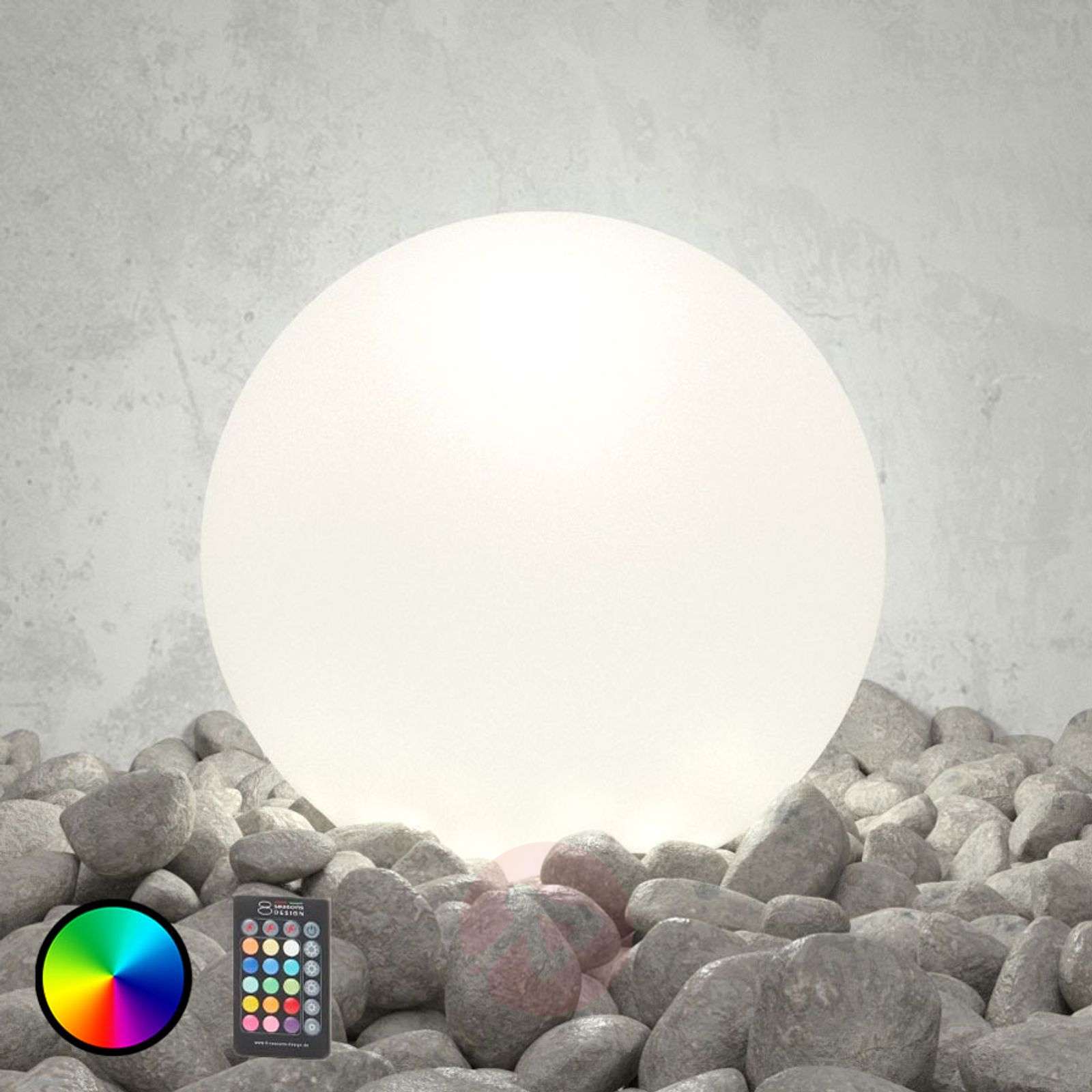 Atrakcyjna lampa dekoracyjna zewnętrzna Shining Globe, dająca światło akcentujące Lampa dekoracyjna zewnętrzna Shining Globe to idealny stylowy element oświetleniowy do stosowania na zewnątrz budynków oraz wewnątrz nich. Lampa kulista, która dzięki doskonałej jakości żarówkom LED RGB zapewnia oświetlenie akcentujące o urzekającej jasności. Dzięki zastosowanemu materiałowi jest ona zgodna z wytycznymi dla stopnia ochrony IP44. Zastosowany tu polietylen jest odporny na warunki atmosferyczne. Cechę szczególną stanowi możliwość ściemniania tej kuli dekoracyjnej. Łącznie można wybrać trzy prędkości zmiany barw i pięć poziomów ściemniania. Jest to możliwe dzięki zastosowaniu oddzielnego pilota, który stanowi część dostawy. Jako że lampa ta ma przewód zasilający o długości 5 metrów, można umieścić ją pojedynczo w dowolnym miejscu, na przykład na trawniku. Ten produkt jest w 100% „made in Germany”. Klasa efektywności energetycznej: A