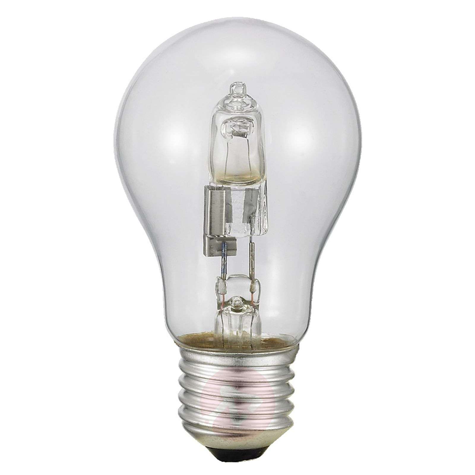 Lampa halogenowa E27 dostępna w różnych opcjach mocy Tę lampę halogenową można użytkować w uniwersalnym zakresie zastosowań przez okrągłe 2 tyś. godzin. Źródło dostępne jest w różnych wariantach mocy, może więc zastępować żarówki nawet 100-watowe, przy czym w porównaniu ze zwykłą żarówką lampa halogenowa odznacza się dużo lepszą energooszczędnością (EEK C). Lampa ma bardzo dobry wskaźnik oddawania barw (RA100) i roztacza na otoczenie ciepłe białe światło (2 700 K). Warianty: Lampa halogenowa 20 W - zastępuje żarówki o mocy do 25 W Lampa halogenowa 28 W - zastępuje żarówki o mocy do 40 W Lampa halogenowa 42 W - zastępuje żarówki o mocy do 60 W Klasa efektywności energetycznej: C
