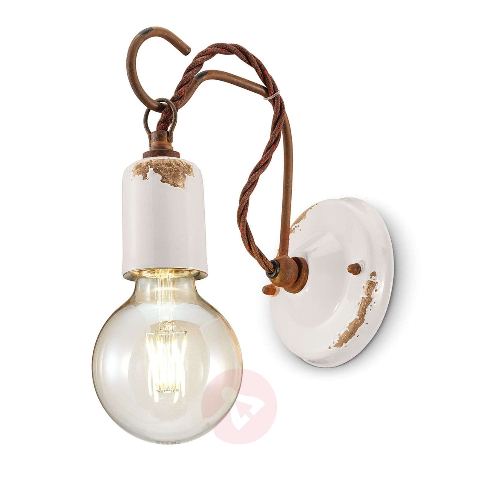 Made in Italy – lampa ścienna Vintage C665 wykonana z ceramiki i metalu Lampa ścienna C665, zaprojektowana w stylu vintage, ma prostą konstrukcję i charakteryzuje się obecnością powierzchni w kolorze, który sprawia, że lampa wygląda na zużytą. Dzięki wyrazistym kolorom i błyszczącej powierzchni lampa jest nowoczesna. Jako ze została wykonana z ceramiki i metalu, bez problemu dopasowuje się także do wnętrz w stylu urbanistycznym lub w stylu vintage. Charakterystyczne dla tej lampy jest wygięte metalowe mocowanie, podtrzymujące oprawkę na żarówkę tak, że wygląda ona jak latarnia, a przy tym otoczone oplecionym przewodem zasilającym. Elementy z poprzednich epok w połączeniu z nowoczesnym, włoskim designem sprawiają, że lampa ścienna C665 wygląda przekonująco. - ręczna produkcja we Włoszech Klasa efektywności energetycznej: A++