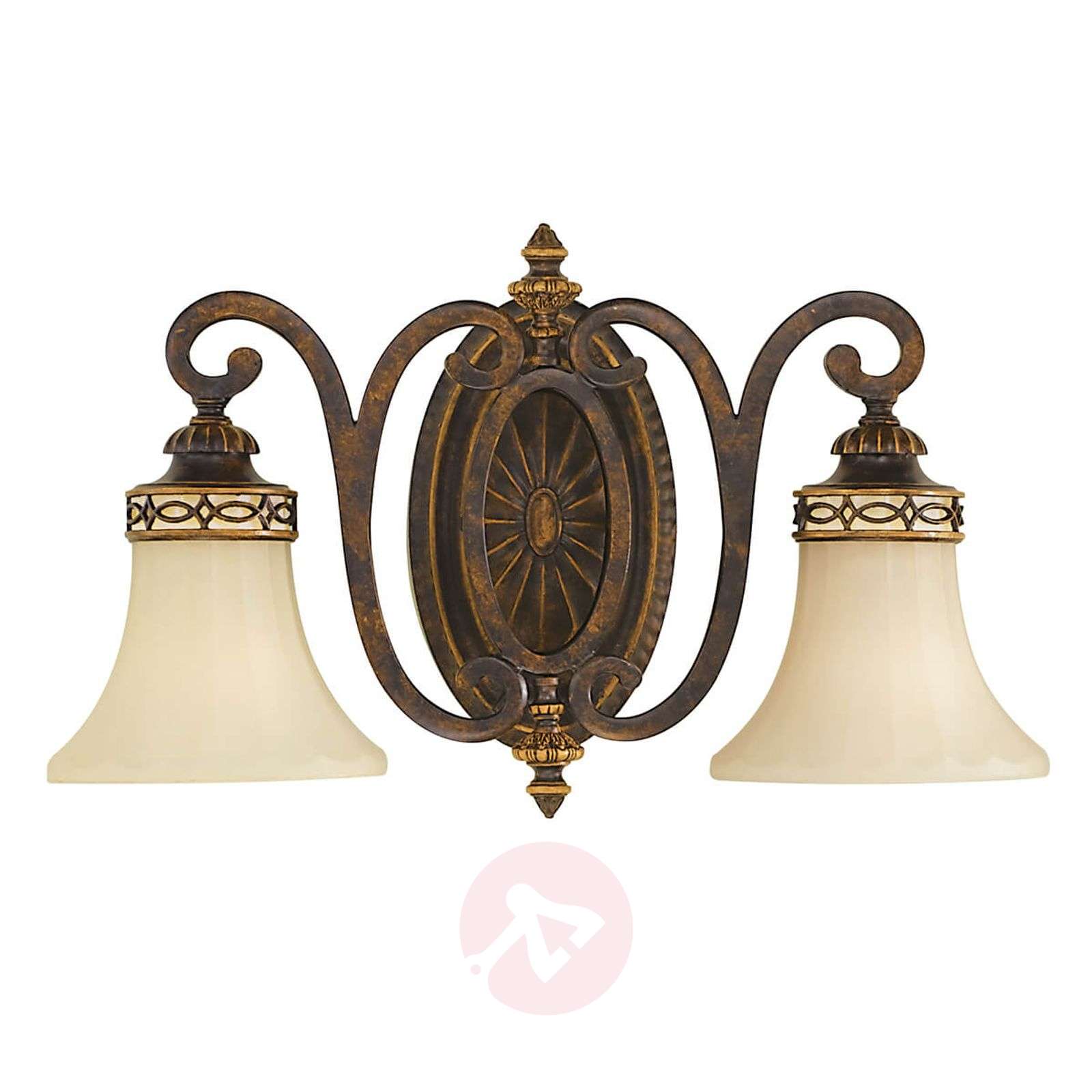 2-punktowa lampa ścienna Drawing Room – imponujące oświetlenie dodatkowe Wygląd lampy ściennej Drawing Room inspirowany jest epoka edwardiańską, okresem w historii kultury Wielkiej Brytanii, który rozpoczął się w 1901 roku z chwilą wstąpienia Edwarda VII na tron. - do 1914 roku, w którym pojawiła się nowa lekkość w projektowaniu mody i przedmiotów codziennego użytku. Kolorowa orzechowa podstawa urzeka kunsztowną dekoracją, a dwa klosze kieliszki zgrabnym kształtem, który wspaniale dopełnia wyglądu całości. Drawing Room może być montowana jako up- lub downlight, zapewnia nastrojowe oświetlenie akcentujące w salonach i korytarzach, a także stanowi ich ozdobę, gdy jest wyłączona. Klasa efektywności energetycznej: A++