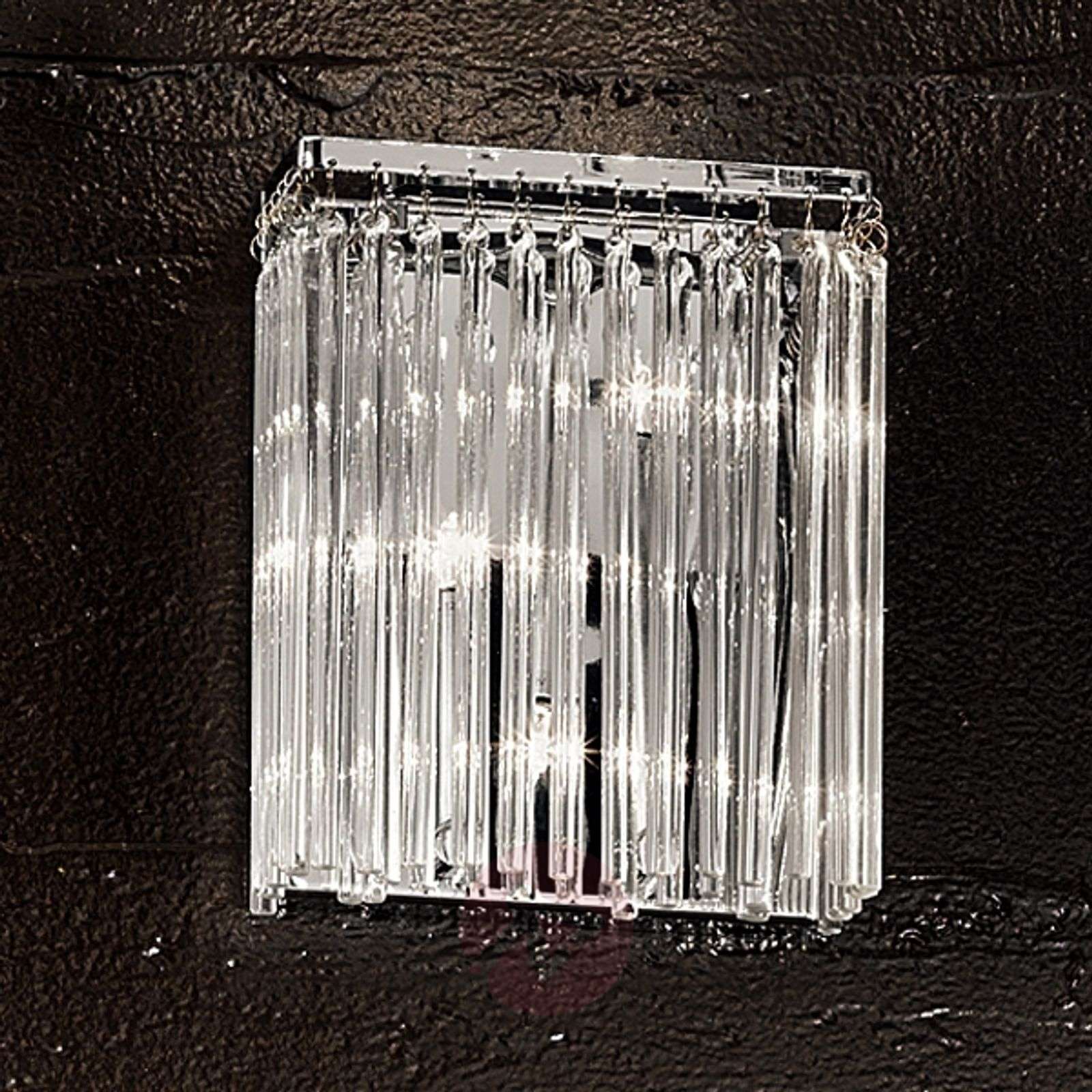 FUTURE - migocząca lampa ścienna ze szklanymi prętami i chromowaną płytą ścienną Gra migoczących świateł i delikatnych dźwięków wytwarzana przez szklane pręciki i błyszczące elementy chromowane spowoduje, że lampa ścienna FUTURE będzie ściągać uwagę jeszcze zanim zaświeci się światło. Klasa efektywności energetycznej: A++
