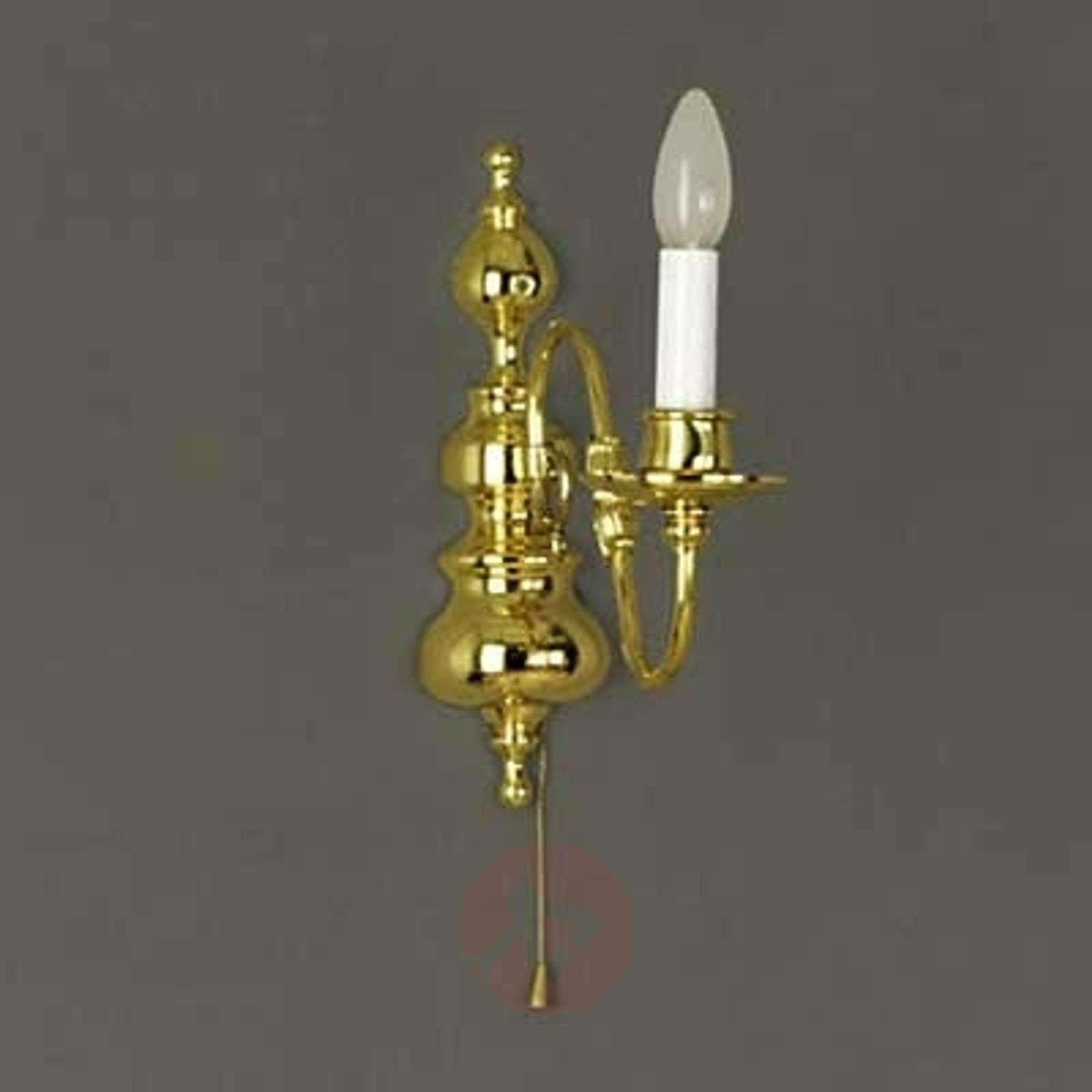 Lampa ścienna IMKE, mosiądz polerowany na wysoki połysk, z włącznikiem pociągowym Ta stylowa, flamandzka lampa ścienna zachwyca swoim imponującym wyglądem i wysokiej jakości wykończeniem elementów wykonanych w całości z mosiądzu i odlewanych. Mosiężna, polerowana na wysoki połysk powierzchnia sprawia, że jest ona bardzo reprezentacyjna. Lampa ścienna będzie wyjątkowo efektowną ozdobą każdego pomieszczenia. Lampy te spełniają najwyższe wymagania w zakresie wysokiej jakości, elegancji i trwałości. Tutaj połączenie kreatywności projektantów i austriackiej sztuki rzemieślniczej pozwala na stworzenie produktów, znajdujących uznanie na arenie międzynarodowej. Od roku 1948 lampy tego producenta są wytwarzane w 100 % w Austrii, co gwarantuje dostępność części zamiennych przez długie lata. Na zapytanie dostępna także w innych rozmiarach i wykończeniach powierzchni. Klasa efektywności energetycznej: A++