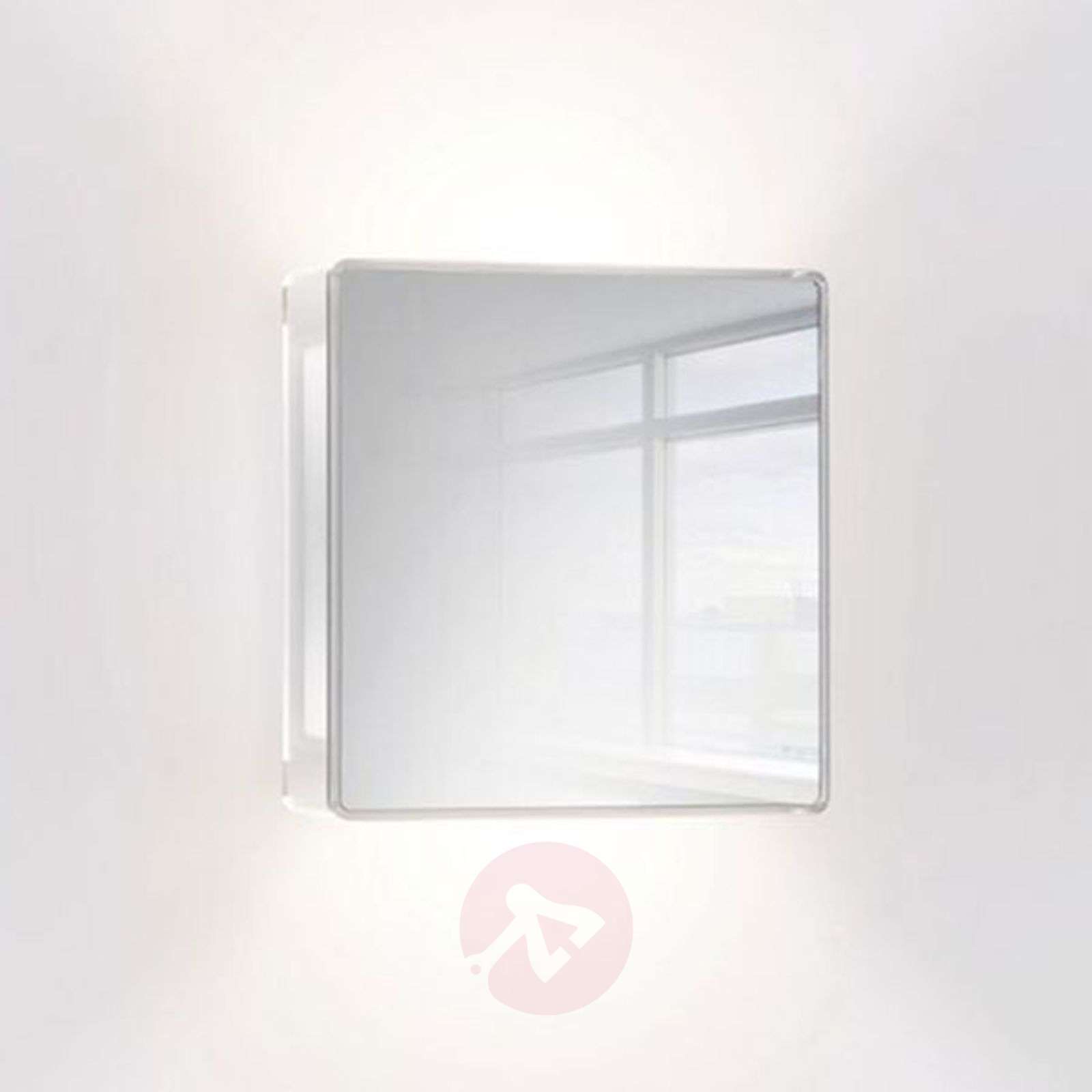 Oświetlenie i lustro w jednym: Kinkiet LED App Kinkiet LED App to lampa o prostym kształcie, a tak efektowna, która wpada w oko przede wszystkim dzięki lustrzanej powierzchni części przedniej. Podstawa lampy, tzn. radiator żarówki LED o wysokiej wydajności, ze wskaźnikiem oddawania barw Ra 90, wykonana jest z aluminium, a element prostopadłościenny - z poliwęglanu. Pokrywa przednia z prawdziwego szkła lustrzanego nadaje lampie szczególną wymowę. Jeśli zamontujemy te lampę w przedpokoju, będziemy mieć tam zarazem i lustro, w którym można się przejrzeć tuż przed wyjściem z domu. Również gdy zamontujemy tę lampę w budynkach użyteczności publicznej, np. w hotelach czy biurowcach, App przekona nas prostym, a zarazem wymownym designem oraz zastosowaną technologią. W przypadku lampy ściennej App rozproszenie światła jest symetryczne w górę i w dół, światło po bokach jest tylko delikatnie rozproszone i zupełnie nie oślepia. Jako że lustrzana osłona z przodu nie przepuszcza światła, światło w pomieszczeniu na pewno nie będzie oślepiać. Klasa efektywności energetycznej: A+