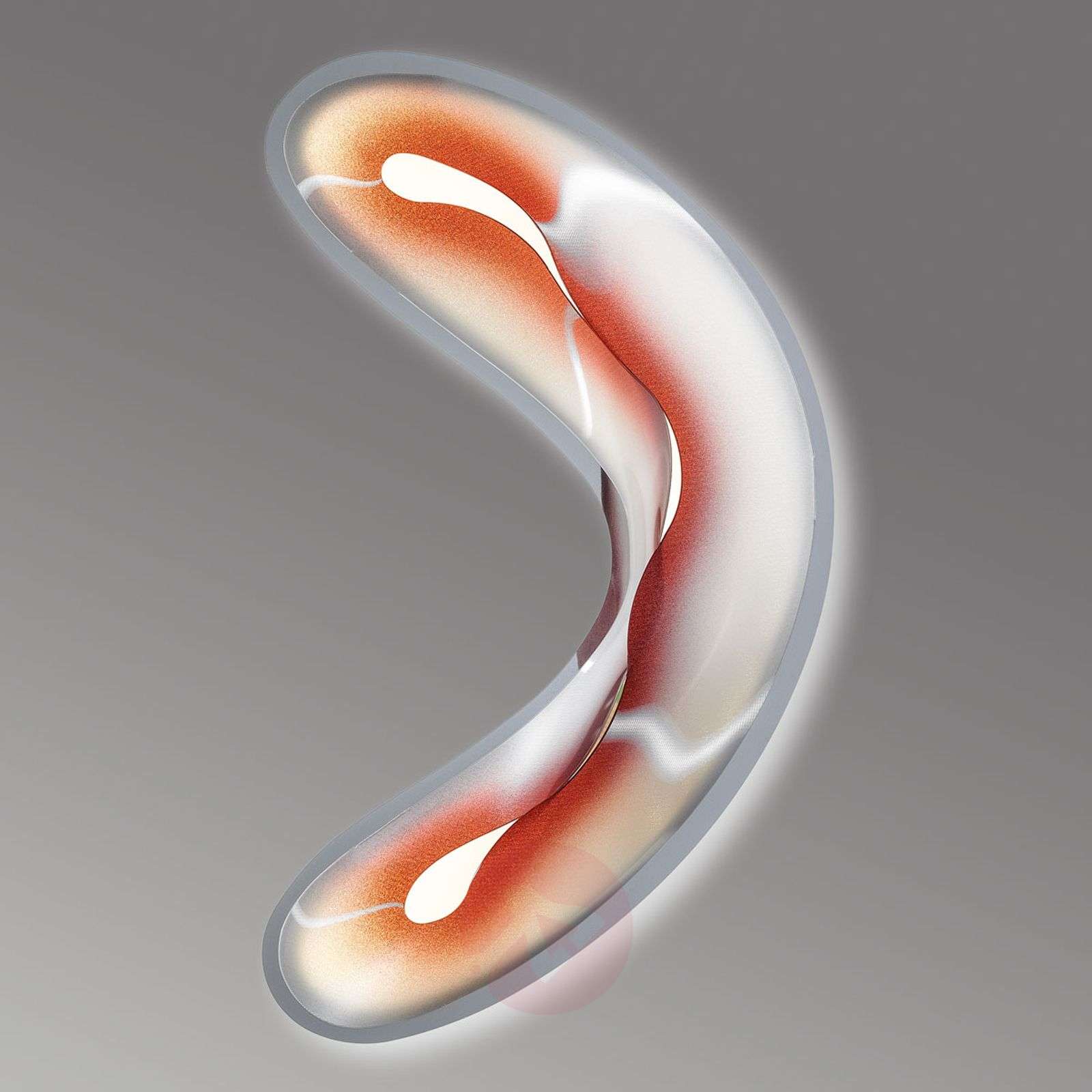 Lampa ścienna CROCCO S zapewnia fascynujące efekty świetlne Lampa ścienna CROCCO S posiada niezwykle organiczny kształt. Jej klosz jest wykonany z materiału Lentiflex®, który ze względu na wyjątkowe wykończenie posiada ciekawą, oszlifowaną powierzchnię. Materiał podkreśla wygięty kształt lampy, która wygląda niczym płynąca woda. W zależności od kąta patrzenia zmieniają się refleksy i intensywność kolorów światła LED. Patrząc na lampę w pionie efekt ten jest mniejszy, w poziomie - większy. Slamp - włoski producent oświetlenia z siedzibą w Rzymie tworzy wysokiej jakości designerskie lampy częściowo z własnych, opatentowanych materiałów takich jak Cristalflex®, Opalflex® lub Lentiflex®, które z jednej strony zachwycają uroczymi efektami świetlnymi, drugiej zaś spełniają najwyższe wymagania. Pierwszorzędne wykonanie oraz wysoka jakość czynią z lamp tej włoskiej marki produkty, które spełniają najwyższe wymagania konsumentów. Klasa efektywności energetycznej: A+