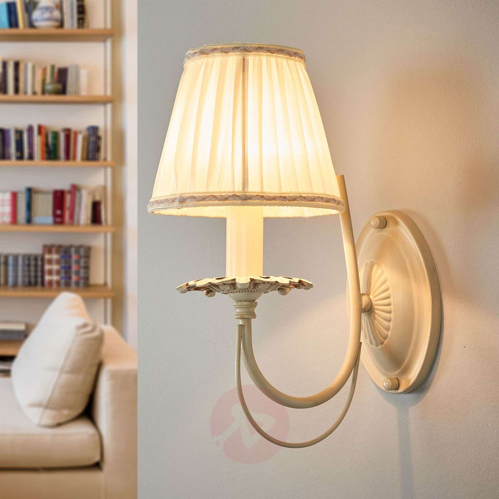 Kremowa satynowa lampa ścienna Olivia Lampa ścienna Olivia to elegancja w czystej postaci. Na temat źródła tej elegancji nie trzeba zbyt wiele filozofować – wystarczy spojrzeć na lampę. Uwagę zwraca pięknie ukształtowana płyta ścienna, z której wygina się ramię z oprawą żarówki. Oba te elementy zostały wymodelowane ręcznie. Ich dopełnieniem jest subtelny klosz z najdelikatniejszej plisowanej satyny, dzięki któremu Olivia staje się niepowtarzalnie eleganckim źródłem światła. Przy załączonej żarówce materiał klosza jest delikatnie podświetlany od wewnątrz, roztaczając niezwykle przytulną i ciepłą atmosferę. Oczywiście należy również napomknąć o okrągłym elemencie utrzymującym oprawę, imitującym okapnik na wosk. Pokrywają go piękne ornamenty, wspaniale uzupełniające ciekawy wygląd tej lampy ściennej. Klasa efektywności energetycznej: A++