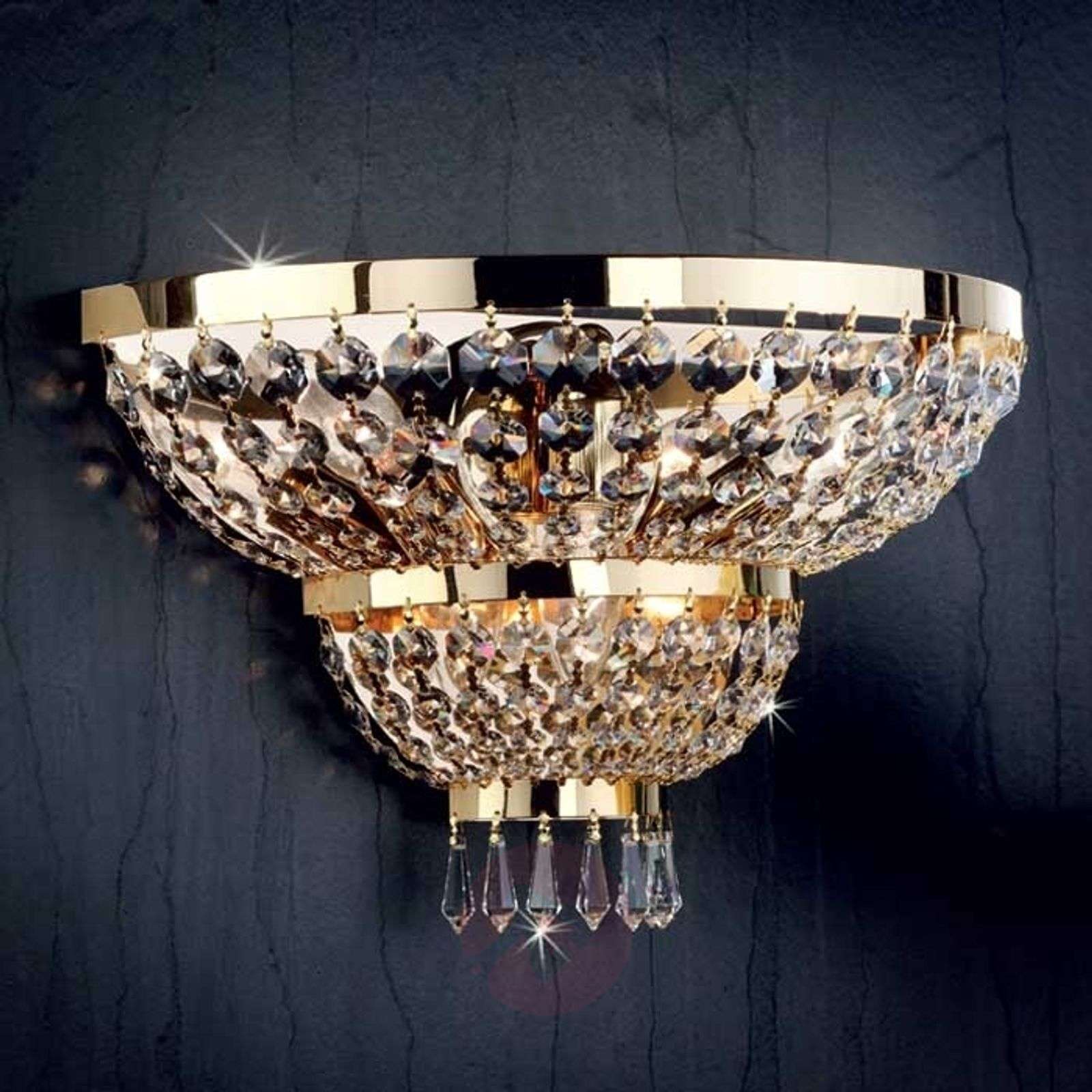 Lampa ścienna SHERATON, pozłacana 24-karat. złotem, 3-punktowa Przepiękna, szlachetna i niezwykła lampa ścienna do żyrandola w stylu Empire SHERATON, w której elementy metalowe są pokryte 24-karatowym złotem i udekorowane pięknymi ozdobami z kryształowego szkła Schöler. Prawdziwe dzieło sztuki, będące ucieleśnieniem piękna i elegancji oraz dobrego smaku. Jeden rzut oka wystarczy, aby się zakochać. Lampa ścienna jest przeznaczona w szczególności do hoteli, pensjonatów i firm i z powodzeniem stosowana w obiektach użytku publicznego. Lampy te spełniają najwyższe wymagania w zakresie wysokiej jakości, elegancji i trwałości. Tutaj połączenie kreatywności projektantów i austriackiej sztuki rzemieślniczej pozwala na stworzenie produktów, znajdujących uznanie na arenie międzynarodowej. Od roku 1948 lampy tego producenta są wytwarzane w 100 % w Austrii, co gwarantuje dostępność części zamiennych przez długie lata. Klasa efektywności energetycznej: A++