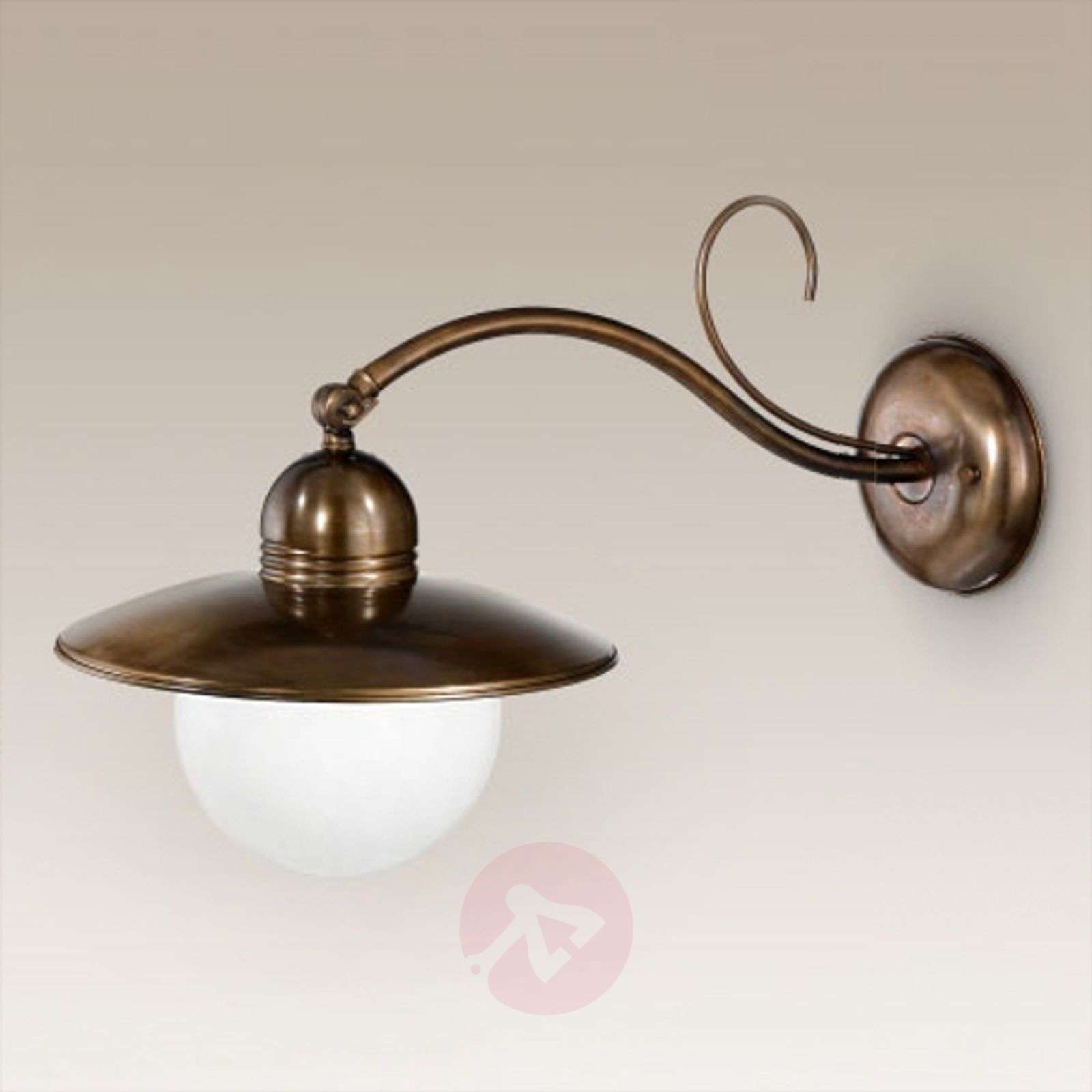 Rustykalna lampa ścienna TAVERNA Lampa ścienna TAVERNA urzeka rustykalnym stylem, podkreślonym mosiężną powierzchnią. Stylowa, okrągła osłona z mosiądzu zapewnia nastrojowe, równomierne światło w pomieszczeniu, dodatkowo wzmocnione przez błyszczący, biały klosz ze szkła. Klosz można indywidualnie regulować za pomocą przegubu. Rustykalny, tradycyjny włoski styl tej lampy ściennej wnosi ciekawe akcenty do wnętrz o różnych stylach wyposażenia. Klasa efektywności energetycznej: A++