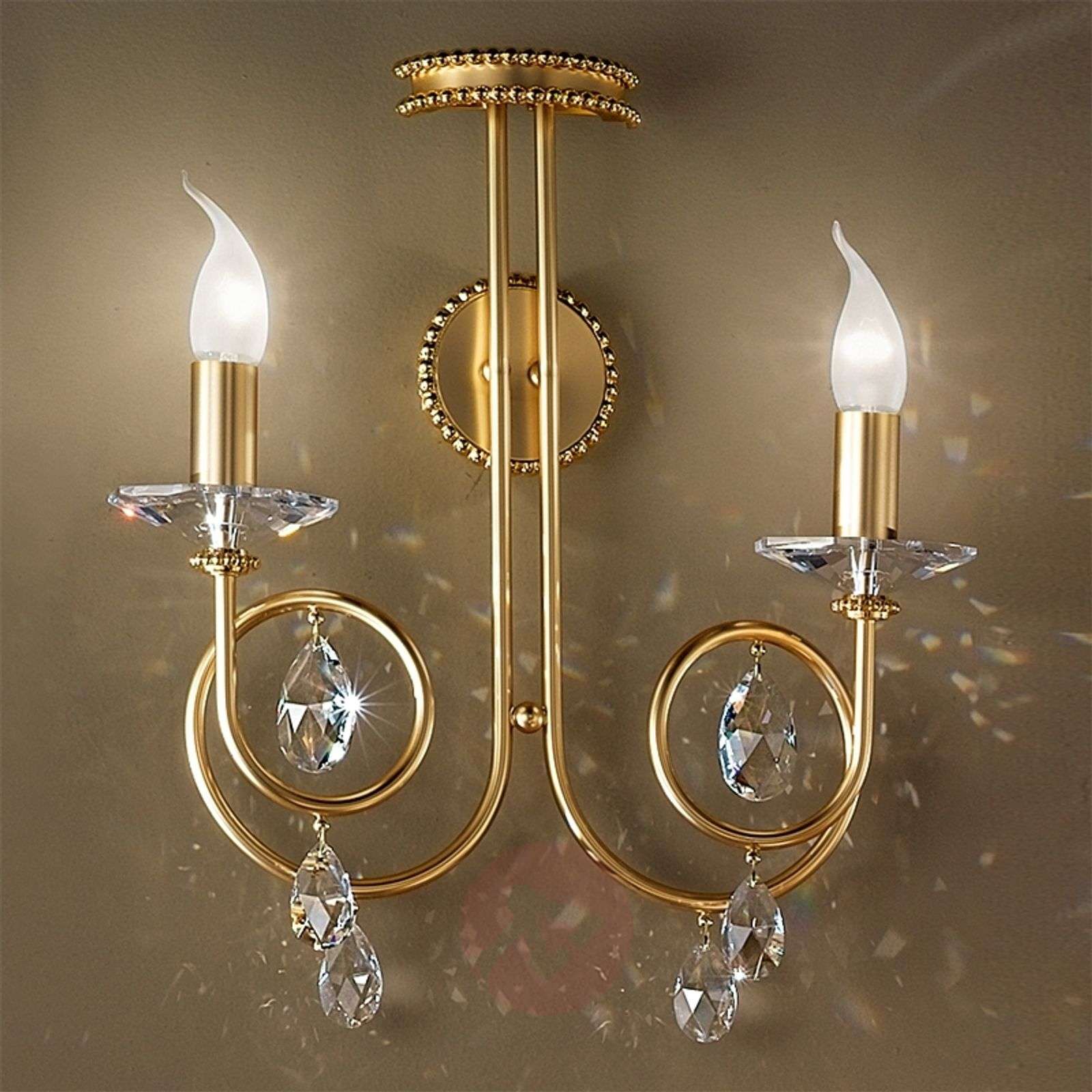 2-punktowa lampa ścienna VIOLETTA z ozdobami z kryształów Swarovskiego Spectra, w kolorze matowego złota lub srebra Filigranowe, łukowate elementy metalowe, kryształ Swarovskiego i nowoczesne żarówki w kształcie płomieni - to wszystko sprawi, że lampa ścienna VIOLETTA wniesie świąteczną atmosferę do wnętrz urządzonych w każdym niemal stylu. Klasa efektywności energetycznej: A++