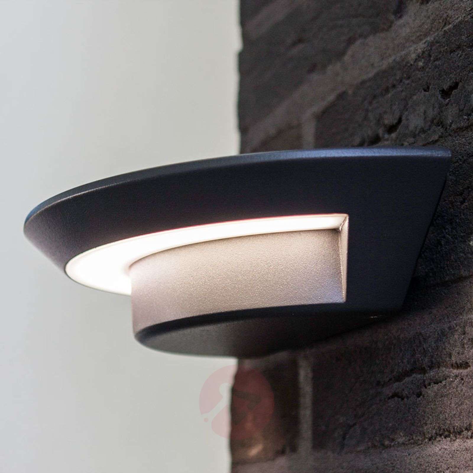 Półokrągła lampa ścienna zewnętrzna Adina z aluminium, z diodą CREE LED Lampa ścienna zewnętrzna Adina uczyni prawdziwą atrakcję z każdej fasady. Jej półokrągły korpus z trwałego aluminium wyposażono w cztery diody LED o mocnym świetle, które zapewnią jasne światło wokół domu. Design jest przy tym bardzo nowoczesny i jednocześnie dekoracyjny. Klasa efektywności energetycznej: A+