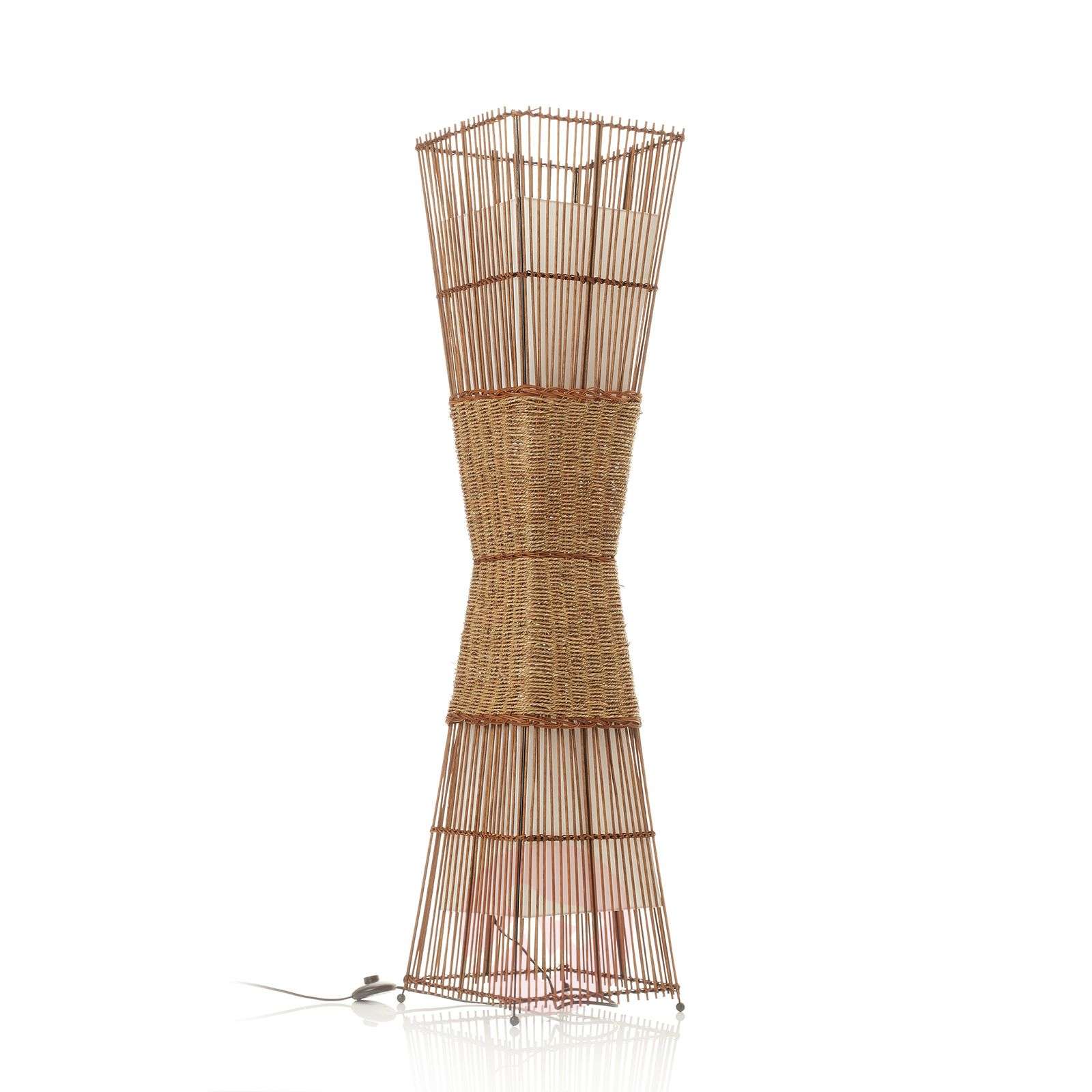 2-punktowa lampa stojąca BAMBOO – wspaniała kompozycja Lampa stojąca BAMBOO to udane połączenie bambusa i materiału, które stanowi nie tylko źródło przyjemnego światła, ale również atrakcyjną dekorację wnętrza. Wyposażona we włącznik na przewodzie doprowadzającym. Klasa efektywności energetycznej: A++