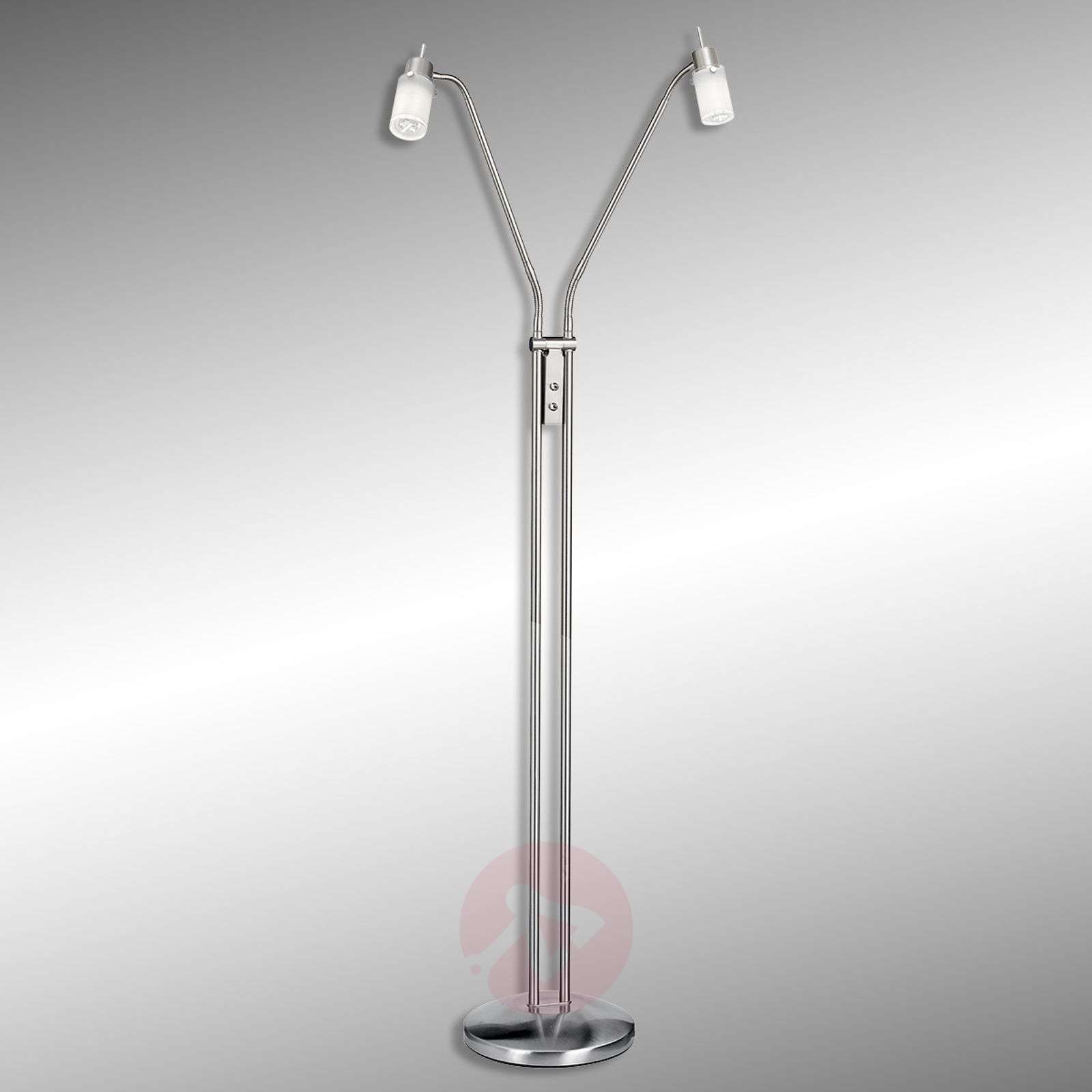 Dwupunktowa lampa stojąca LED MAX – uniwersalne źródło światła Lampa stojąca LED MAX charakteryzuje się nowoczesnym a zarazem ponadczasowym designem w kolorze stali, a do tego jest funkcjonalna dzięki giętkiemu ramieniu, który umożliwia ustawienie światła w dowolnym kierunku. Satynowe szkło rozprasza je, tworząc łagodną poświatę, dzięki czemu lampa zapewni nastrojowe oświetlenie dodatkowe w każdym wnętrzu. Z włącznikiem. Dostawa obejmuje żarówki (2 x 4 W LED GU10). - Barwa światła: ciepła biel - 3.000 kelwinów - 800 lumenów Klasa efektywności energetycznej: A+