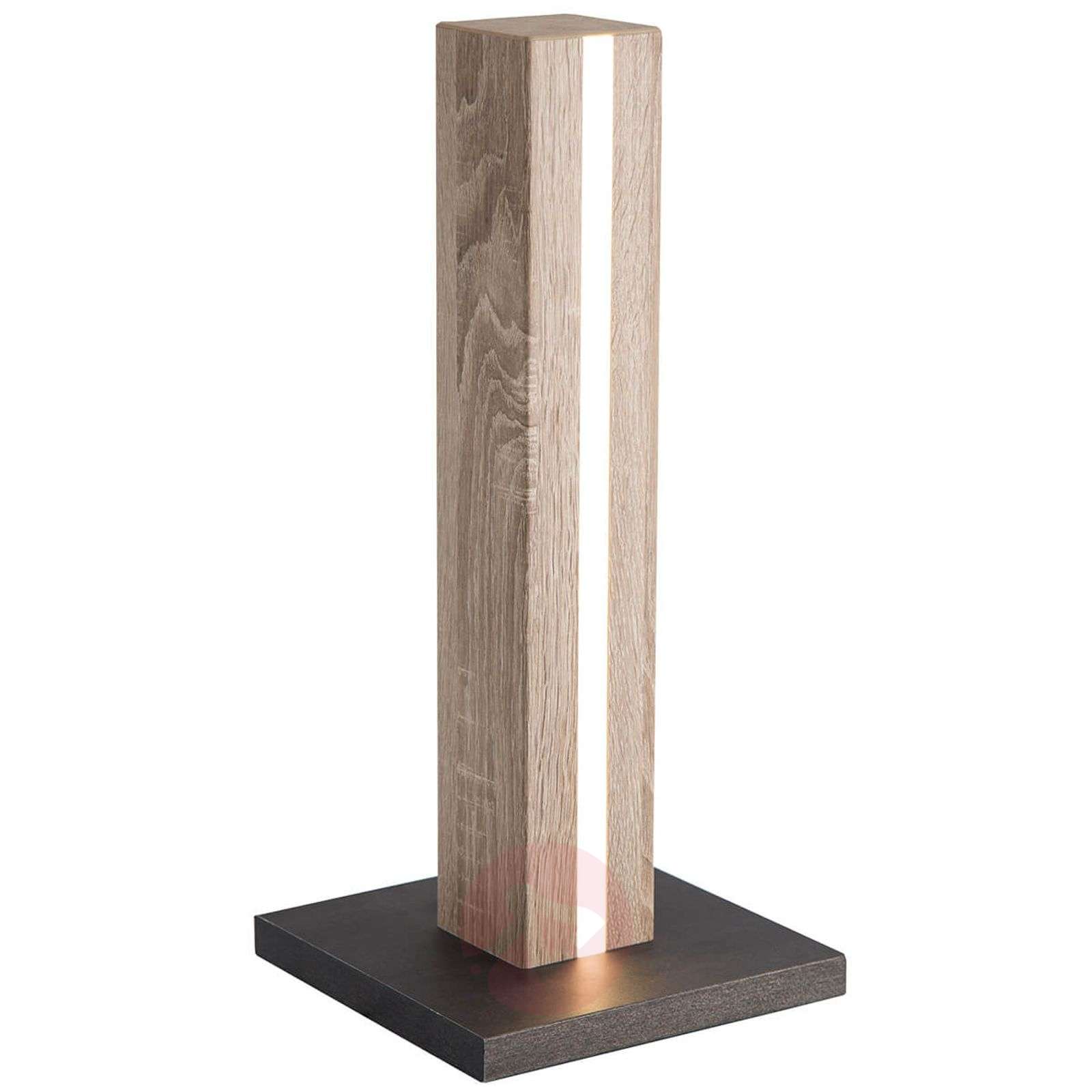 Szlachetne oświetlenie osadzone w drewnie: lampa stołowa LED Self w jasnym kolorze dębu Nowoczesna, elegancka i o prostych liniach – lampa stołowa LED Self z jasnego drewna dębowego nie tylko zapewnia harmonijne światło akcentowe, lecz także pełni rolę elementu nowoczesnego i purystycznego wyposażenia w ciągu dnia. Belka z drewna dębowego ma kształt kolumny i prosto wznosi się w górę. Pośrodku belka posiada listwę LED, która po włączeniu delikatnie emituje światło do najbliższego otoczenia. Lampa stołowa Self nadaje pomieszczeniu przyjazną, a przy tym przejrzystą atmosferę, w której warto się zatrzymać. Lampa stołowa może być stosowana jako lampka nocna w sypialni lub w celu podkreślenia poszczególnych obszarów w salonie lub przedpokoju. Nowoczesny styl umeblowania z ciemnymi meblami stanowi optymalne środowisko, w którym Self może w pełni zaprezentować swoje zalety. Produkt jest produkowany w Niemczech. Klasa efektywności energetycznej: A+