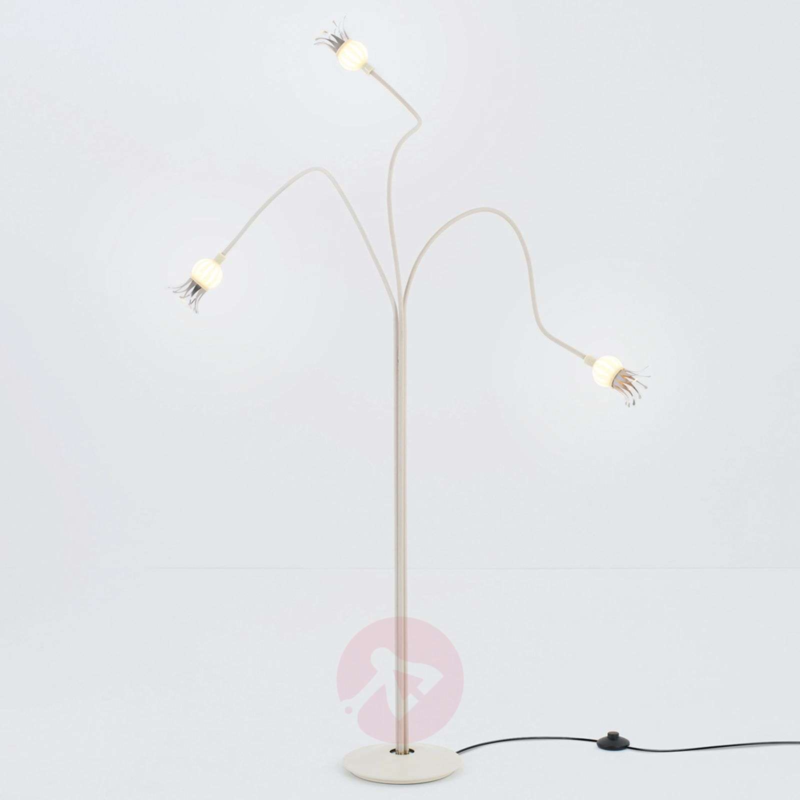 Giętka designerska lampa stojąca Poppy z fascynującymi płatkami kwiatów Ulrich Beckert i Georg Soanca-Pollak to duet designerski, zajmujący się projektowaniem wnętrz i oświetlenia. Wspólnie z projektantem Peterem Thammerem zaprojektowali już po raz trzeci serię lamp, których wyprodukowanie wymagało nie tylko kreatywności, ale i wiedzy z dziedziny fizyki. Celem było wykroczenie o krok poza dotychczasowe granice tego, co było, a jednocześnie zainspirowanie i zafascynowanie produktem. Temu trio przedsięwzięcie to się niewątpliwie udało! Poppy to szczególnego rodzaju lampa stojąca. Wzrok przyciągają przede wszystkim trzy ruchome ramiona, które zdają się wręcz prowadzić własne życie. To właśnie ten efekt sprawia, że Poppy wygląda tak prawdziwie, jak żywa. Osłona z tkaniny skrywa elastyczne ramiona z metalu, które umożliwiają poruszanie Poppy i sprawiają, że jej światło wygląda wręcz niewiarygodnie pięknie i różnorodnie. Utrzymana w tonacji beżu i ceramiki, nie traci nic ze swej elegancji i stylu zarazem. Ci trzej projektanci szczególny nacisk położyli na same główki lampy. Kiedy Poppy jest wyłączona, pękate elementy z dmuchanego szkła oraz umocowane na nich lamelki z metalu, które tworzą optyczną całość z elementem szklanym, sprawiają, że małe klosze wyglądają jak pączki rośliny. Jeżeli teraz załączymy światło w lampie Poppy, możemy zaraz zobaczyć, jak poruszają się płatki kwiatów. Rozkładają się one stopniowo, a następnie coraz bardziej się wyginają, oddalając się niejako od siebie. Tworzą tym samym taki kształt, który robi miejsce na światło wydobywające się na zewnątrz z wnętrza szklanego elementu. Co tu się stało? Ciepło żarówki sprawiło, że lamelki z bimetalu się rozszerzyły, a tym samym kwiaty się otwarły. To fenomenalny efekt, zwłaszcza gdy się zastanowić, jakich komponentów użyto dla jego uzyskania. Poppy - fascynująca lampa stojąca z efektem specjalnym! Klasa efektywności energetycznej: C