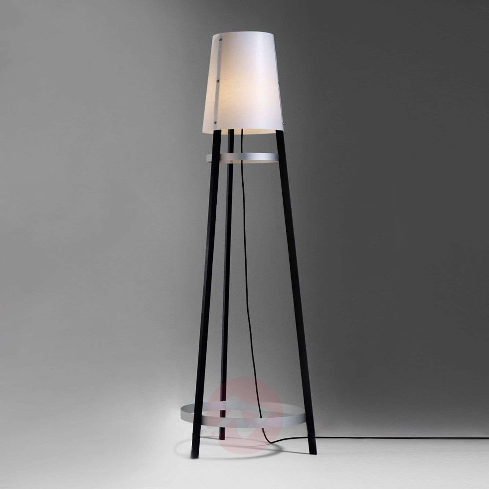 Lampa stojąca WAI TING - garderoba i lampa w jednym, z czerwonym kablem Lampa stojąca WAI TING połączona dodatkowo z garderobą będzie idealnym meblem do zastosowania w przedpokoju czy sypialni, ale pozwoli również na uporządkowanie pomieszczeń biurowych. Wykonany z lunopalu klosz lampy WAI TING wysyła ciepłe, miękkie światło i pięknie kontrastuje z drewnianą podstawą. Przewód zasilający jest wykonany z wysokiej jakości przewodu tekstylnego w kolorze czerwonym, ze ściemniaczem nożnym. Dostarczana z żarówką halogenową 230 V. Klasa efektywności energetycznej: A++