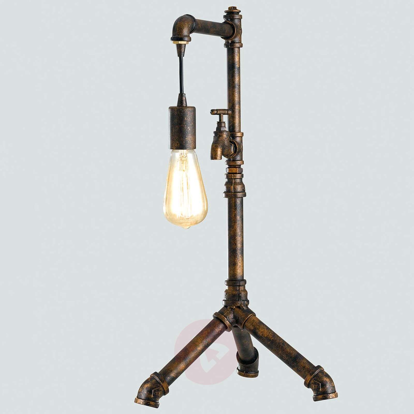 Przemysłowa lampa stołowa Amarcord o rdzawej powierzchni Tradycyjna rura wodociągowa, którą zazwyczaj widuje się tylko w piwnicach, nadaje lampie stołowej Amarcord zupełnie nowe zastosowanie. Podstawę tej lampy tworzą rdzewiejące rury – rzeczywiście, żaden szczegół nie został pozostawiony przypadkowi. Szczególnie wzrok przyciąga mały kranik na środku podstawy, który zaprasza do włączenia urządzenia. Cóż, wbrew pozorom jednak Amarcord wcale nie dostarcza wody, lecz piękne światło i mnóstwo dobrego stylu. Klasa efektywności energetycznej: A++