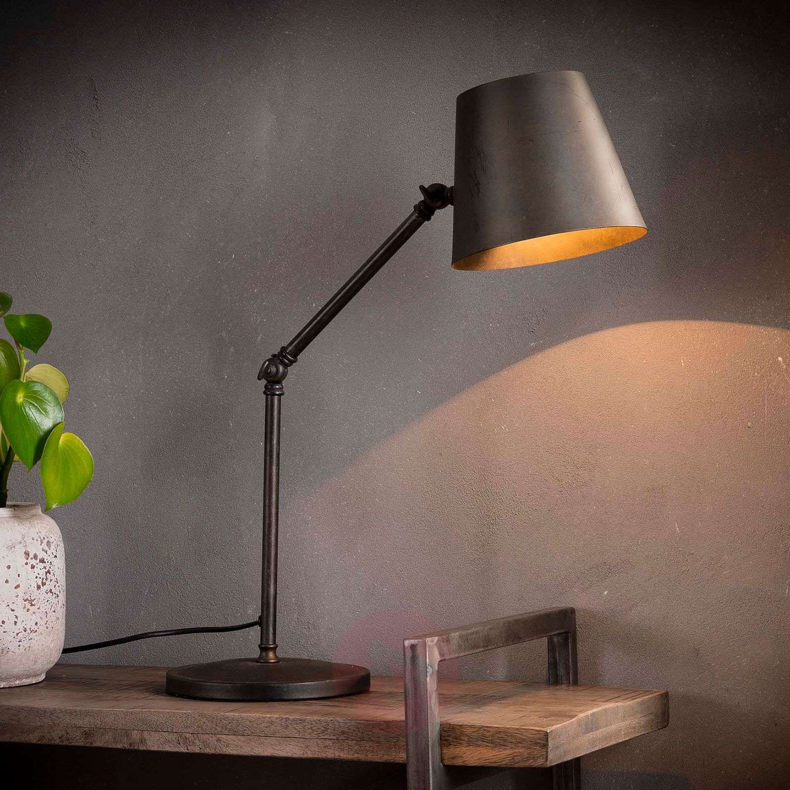 Lampa stołowa Arretona - funkcjonalna i rustykalna Dzięki dwóm śrubom skrzydełkowym na podstawie można dowolnie zmieniać ustawienie oraz wysokość i rozpiętość klosza. Żarówkę E27 można umieścić w cylindrycznym kloszu zwężającym się do góry; pionowe otwory zapewniają bezpośrednie i pośrednie oświetlenie sprawiając, że Arretona w zależności od wyboru może być bardziej funkcjonalna lub dekoracyjna. Dekoracyjność uzyskuje się dzięki szczególnemu wyglądowi ciemnego węgla. Obsługa lampy stołowej odbywa się za pomocą przełącznika na kablu. Klasa efektywności energetycznej: A++