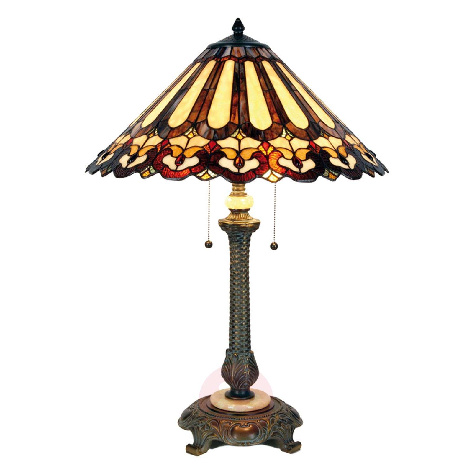 CECILIA – elegancka lampa stołowa w stylu Tiffany Lampa stołowa CECILIA stanowić będzie główną atrakcję nie tylko salonu, ale również i korytarza. Przyciąga uwagę dekoracyjnym kloszem w stylu Tiffany oraz przede wszystkim ekstrawagancką podstawą. Umieszczony w środku włącznik pociągowy umożliwia osobne włączanie żarówek, dzięki czemu możliwe jest różnych efektów świetlnych w zależności od sytuacji. Klasa efektywności energetycznej: A++