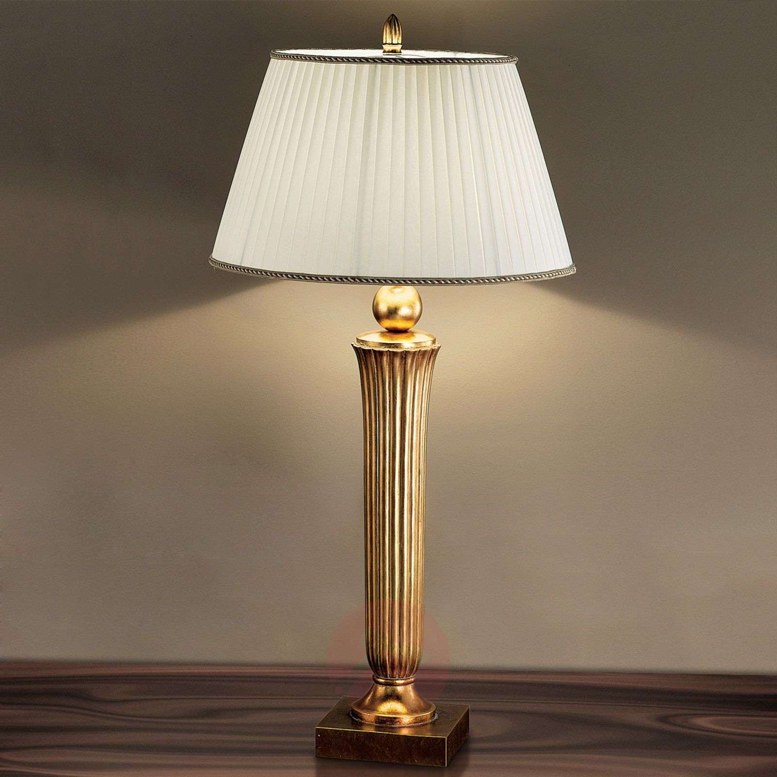 Klasyczna lampa stołowa JANNI z podstawą w kolorze matowego złota Lampę stołową JANNI można zastosować w wielu miejscach - jest ona utrzymana w stylu klasycznym. Podstawa w kolorze matowego złota przydaje jej wytworności. Dzięki delikatnemu, plisowanemu abażurowi lampa będzie przyjemnym oświetleniem akcentowym. Klasa efektywności energetycznej: A++