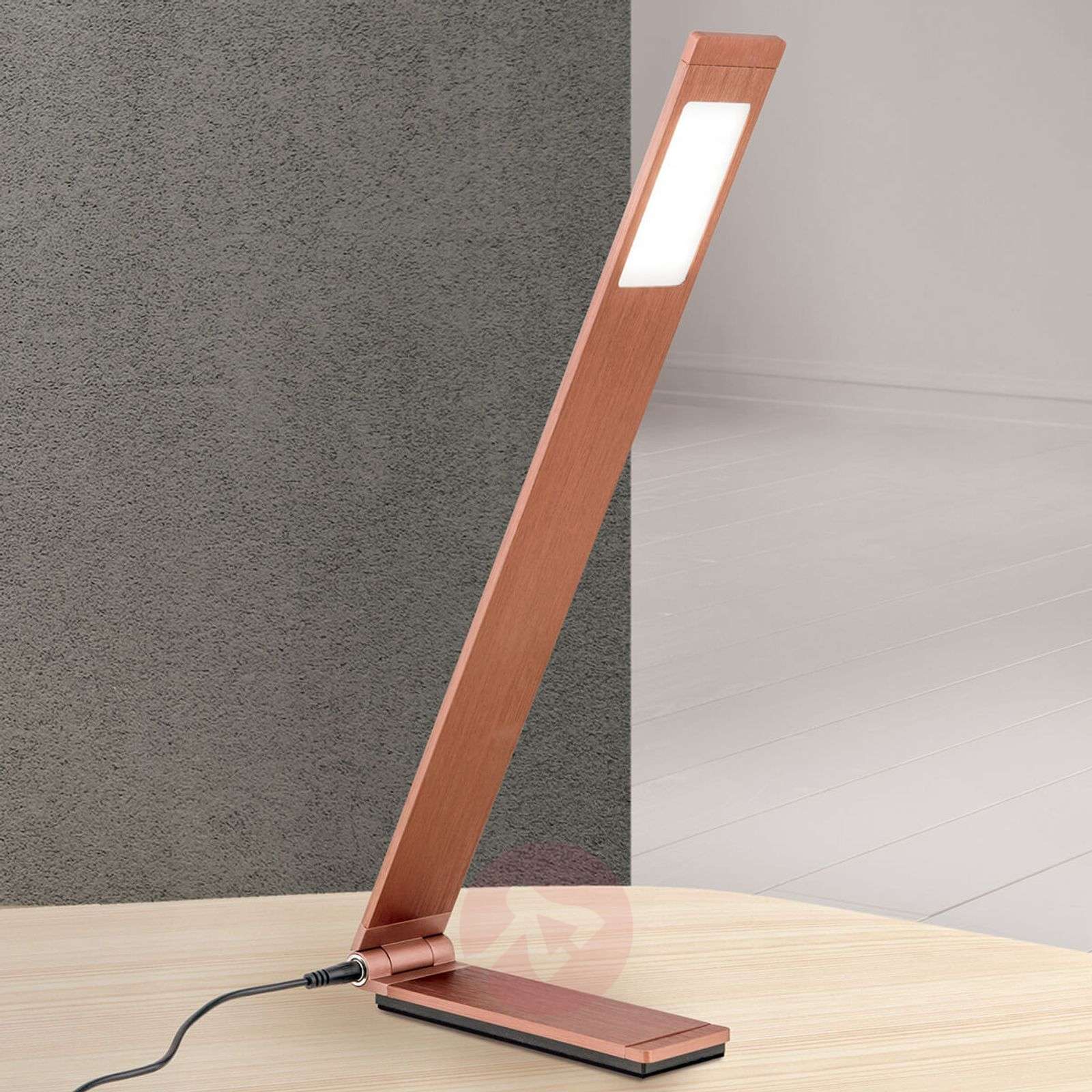 Neville – minimalistyczna lampka biurkowa LED z elastyczną główką Zredukowana konstrukcja lampki biurkowej LED Neville pasuje do każdego nowocześnie urządzonego gabinetu. Kanciasty, prostoliniowy kształt lampy wydaje się dyskretny, a nawet minimalistyczny. Przegub umieszczony z tyłu stopy umożliwia indywidualną regulację wysokości głowicy oprawy, a tym samym dopasowanie kąta padania światła do potrzeb. Im większy kąt między główką oprawy a podstawą, tym większy kąt padania światła. Oszczędzające miejsce i praktyczne źródło światła do każdego biura! Klasa efektywności energetycznej: A