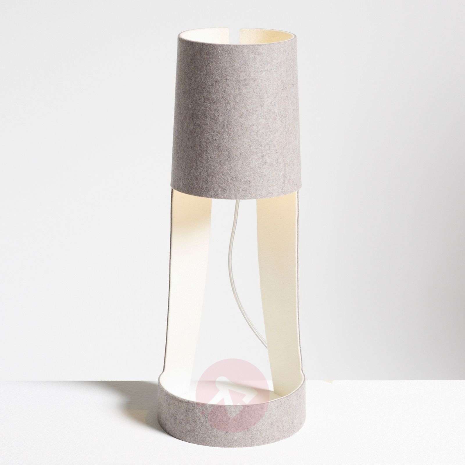 Lampa stołowa MIA z dwukolorowego filcu Niezwykle oryginalna lampa stołowa MIA wykonana z dwubarwnego filcu ozdobi każde wnętrze domu, czy mieszkania, nadając mu indywidualny akcent. Wesołym akcentem jest zapięcie na guzik umieszczone z tyłu lampki. Lampa MIA posiada przezroczysty kabel i jest dostarczana wraz z włącznikiem ręcznym. Dostarczana z żarówką halogenową 230 V. Klasa efektywności energetycznej: A++
