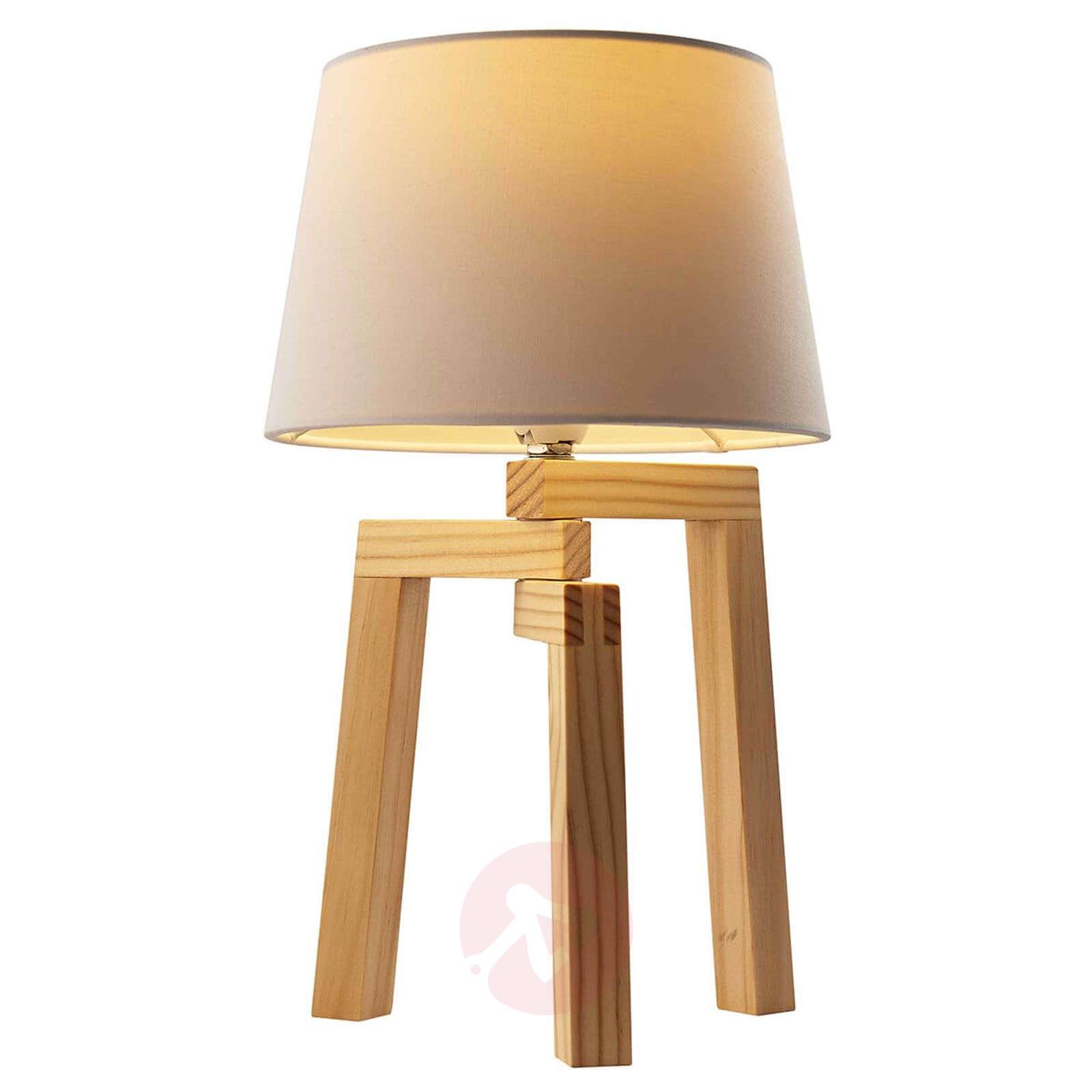 Trójnożna lampa stołowa Montana w jasnym kolorze dębu: dobry nastrój na zawołanie Trójnożna lampa stołowa Montana jest wyposażona w biały, tekstylny klosz, który emituje do bezpośredniego otoczenia nieoślepiające światło. Podstawa lampy składa się z trzech dębowych nóg w naturalnym kolorze, które sprytnie zbiegają się pod kloszem. Lampa najlepiej sprawdza się na szafce nocnej w sypialni, jednak może być również użyta w dowolnym innym miejscu. Wszędzie tam, gdzie mile widziana jest przytulna atmosfera, lampa stołowa Montana stanowi idealny element dekoracyjny, zapewniający dyskretne oświetlenie. Stylistycznie Montana pasuje do nowoczesnego, jasnego stylu wyposażenia wnętrz, gdyż ta lampa stołowa doskonale wkomponowuje się w to środowisko. Klasa efektywności energetycznej: A++