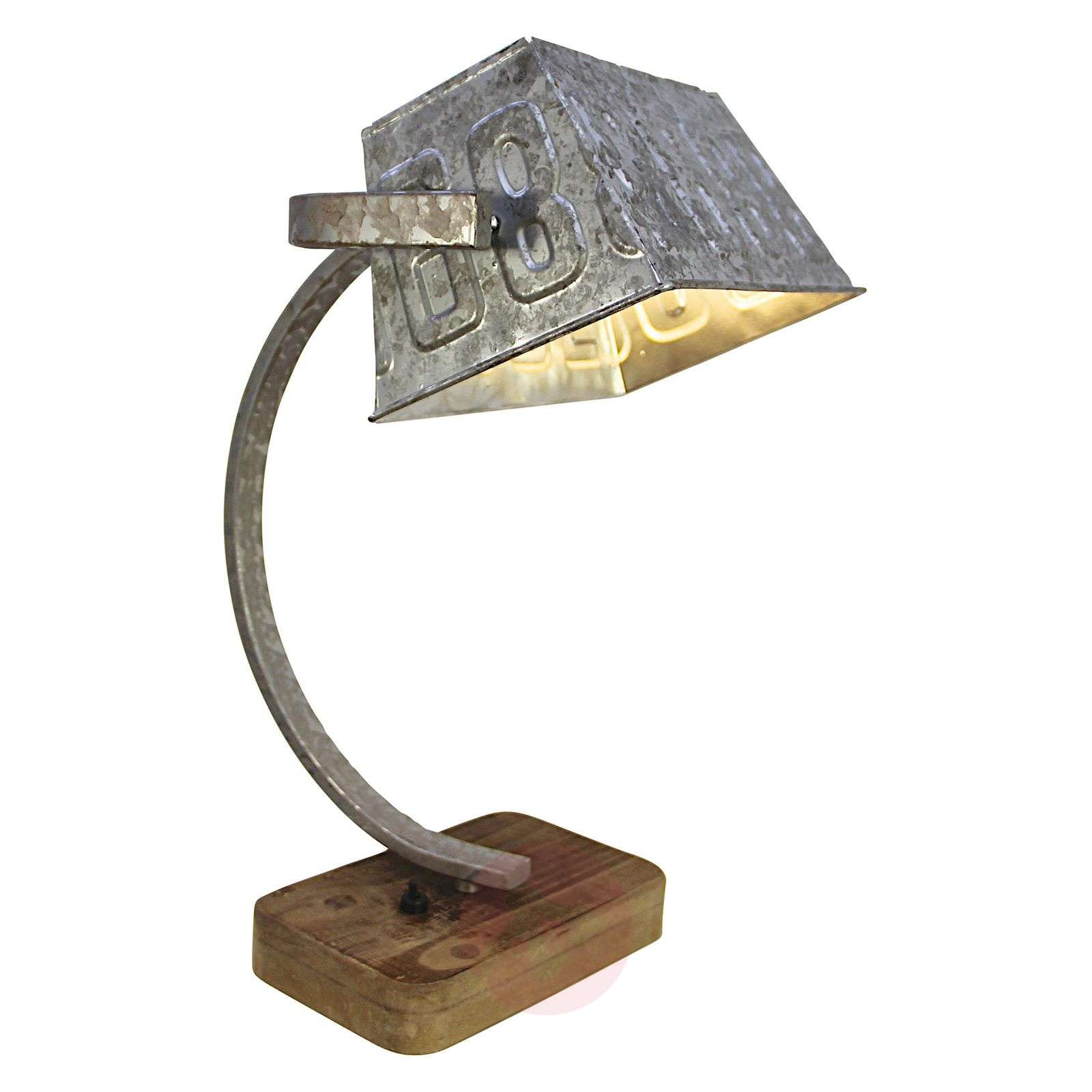 Lampa stołowa Scava z drewnianą podstawą, cynkowa