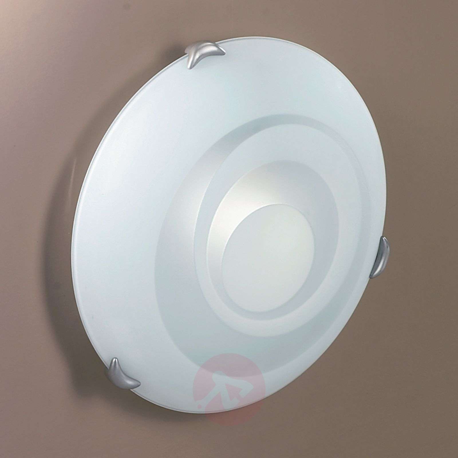 Okrągła lampa sufitowa LORIA z satynowanego szkła Ta przepiękna lampa sufitowa, dostępna w 2 rozmiarach, sprawia wrażenie lekkości i spokoju. Klosz lampy jest ozdobiony drobnym wzorem, nawiązującym do stylu retro: dlatego właśnie światło przenika przez niego z różną intensywnością, tworząc w pomieszczeniu unikalne efekty świetlne i wnosząc do niego atmosferę łagodności i przytulności. Klasa efektywności energetycznej: A++