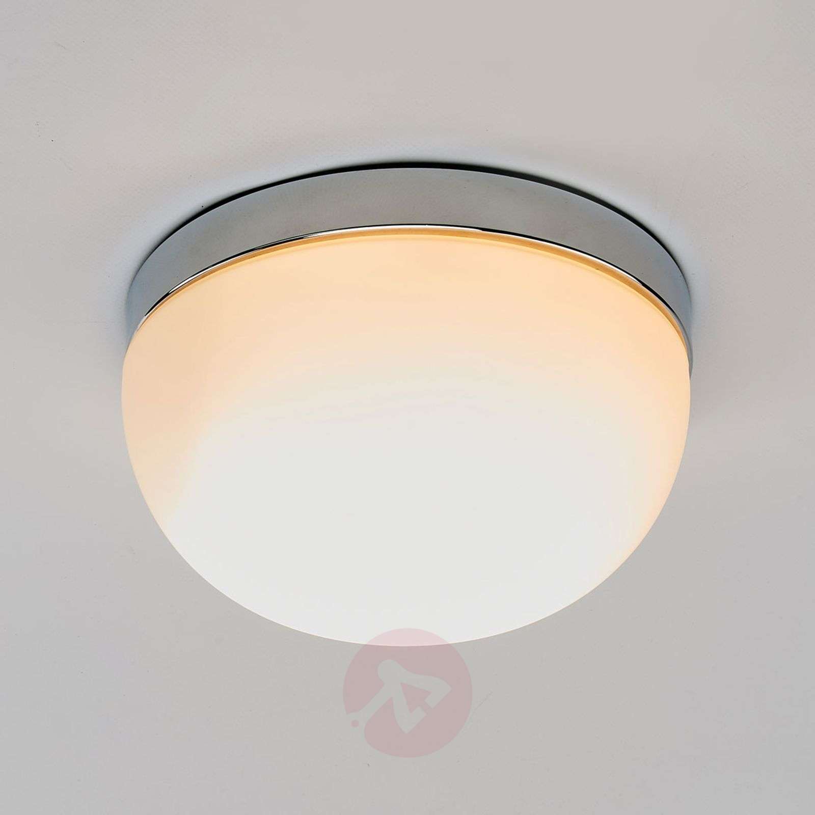 Adalind – szklana lampa sufitowa z chromowaną obręczą Dzięki okrągłemu kształtowi i prostemu wyglądowi lampa sufitowa Adalind pasuje do wielu wnętrz. Chromowana krawędź zapewnia harmonijny kontrast ze szklanym kloszem, samo zaś światło łagodnie i równomiernie dociera do pomieszczenia. Można zastosować dowolną żarówkę z oprawką E27, także z energooszczędną technologią LED.