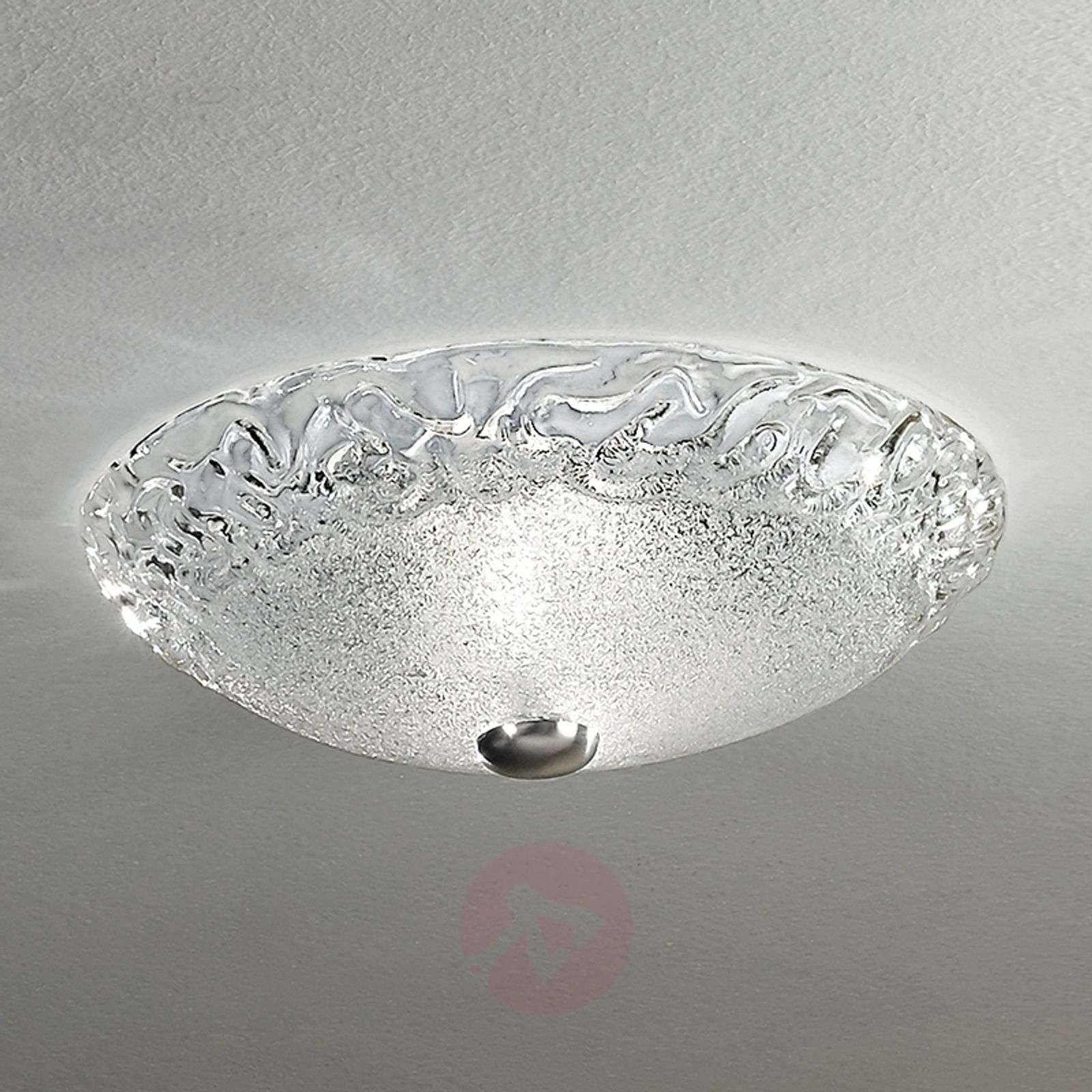 Estetyczna lampa sufitowa Finnja o powierzchni imitującej lodową taflę w 2 rozmiarach Lampa sufitowa Finnja wzbudza podziw szlachetnym wyglądem ozdobnego pierścienia otaczającego klosz, o powierzchni imitującej lodową taflę. Prawdziwa perełka na suficie, która uatrakcyjni każde wnętrze. Klasa efektywności energetycznej: A++