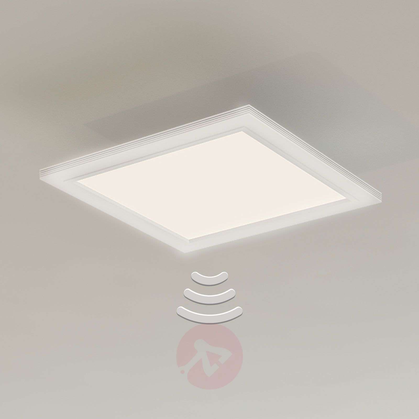 Lampa sufitowa LED z czujnikiem w kolorze białym Ultrapłaski panel LED z czujnikiem wykonany jest z metalu i tworzywa sztucznego i charakteryzuje się wyjątkowo długą trwałością. Dzięki swojemu kwadratowemu kształtowi i eleganckiemu wyglądowi zewnętrznemu lampa sufitowa doskonale komponuje się z nowoczesnymi stylami wyposażenia wnętrz. Zintegrowany czujnik światła dziennego wykrywa jasność w pomieszczeniu i automatycznie reguluje natężenie światła. Zasięg detekcji wynosi do 10 metrów. W ten sposób lampa energooszczędna może być wykorzystywana do oszczędzania energii elektrycznej. Płaska konstrukcja panelu tworzy wrażenie unoszenia się w powietrzu. Czas włączenia można ustawić w zakresie od 5 sekund do 10 minut. Klasa efektywności energetycznej: A+