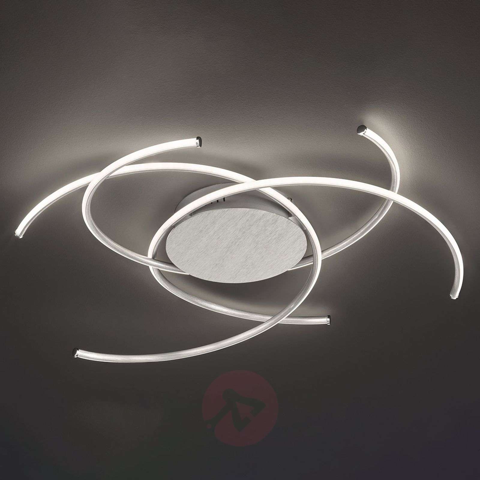 Geometryczna forma lampy sufitowej LED Juls w srebrnych odcieniach Nowoczesna lampa sufitowa LED Juls to elegancki element oświetleniowy, który dzięki swojej konstrukcji efektywnie oświetli nawet duże pomieszczenia. 3-punktowa lampa sufitowa składa się z okrągłego mocowania ściennego i trzech, otwartych na zewnątrz pierścieni. Mocowanie i wewnętrzne strony pierścieni są ze szczotkowanego aluminium. Od strony zewnętrznej pierścienie intensywnie oświetlają otoczenie. Lampę można przełączyć na jeden z trzech poziomów jasności przez kilkakrotne naciśnięcie przełącznika ściennego. Klasa efektywności energetycznej: A+
