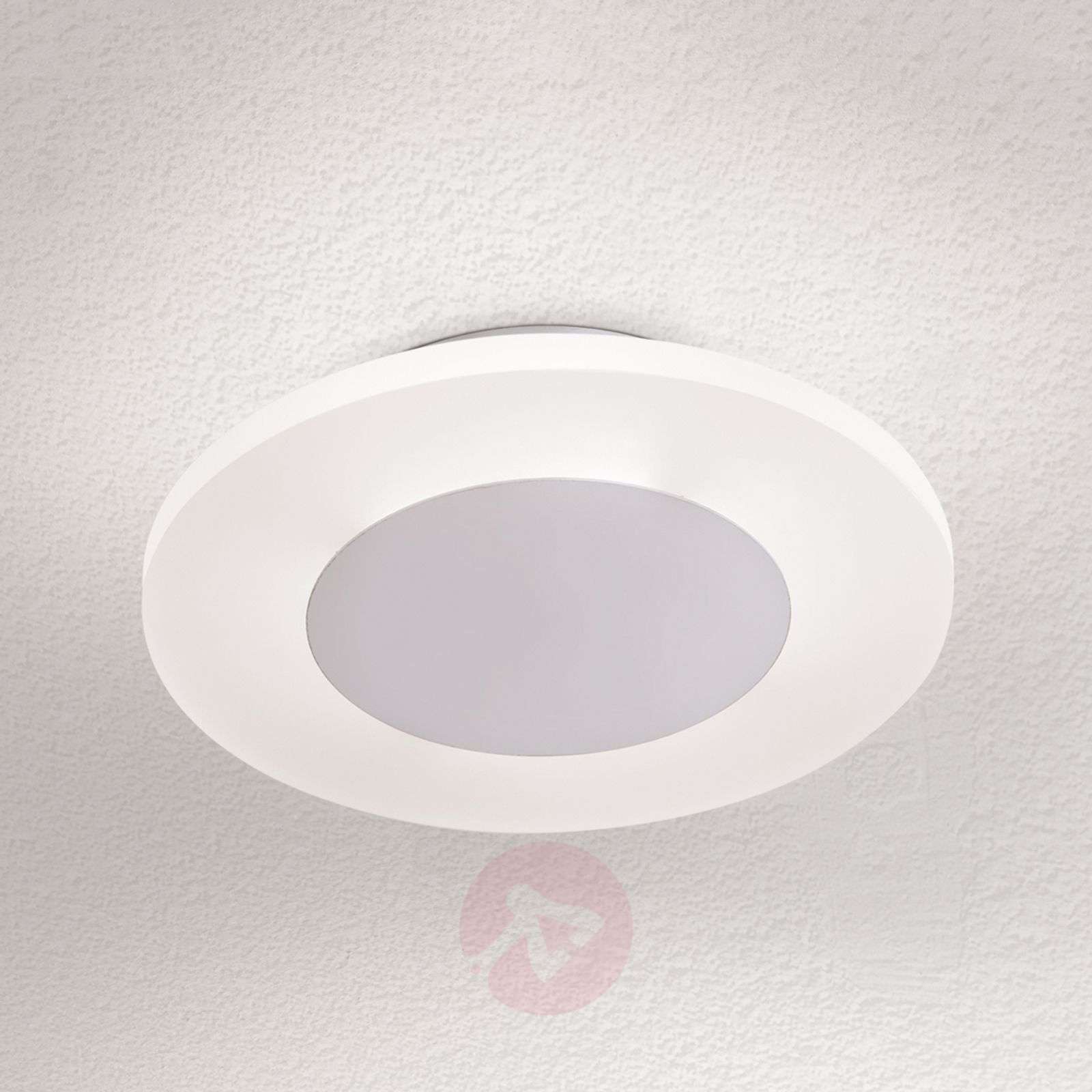 Lampa sufitowa LED KARIA o okrągłej formie, śr. 20 cm W przypadku tej małej lampy sufitowej energooszczędne diody LED wbudowano bezpośrednio w akrylowy klosz. Zapewnia to wyjątkowo jednolity rozsył światła. Całkowita moc tej nowoczesnej lampy do na przykład korytarzy czy salonów wynosi 7 W, a siła strumienia świetlnego wynosi 430 lumenów. - ciepłobiałe światło Klasa efektywności energetycznej: A+