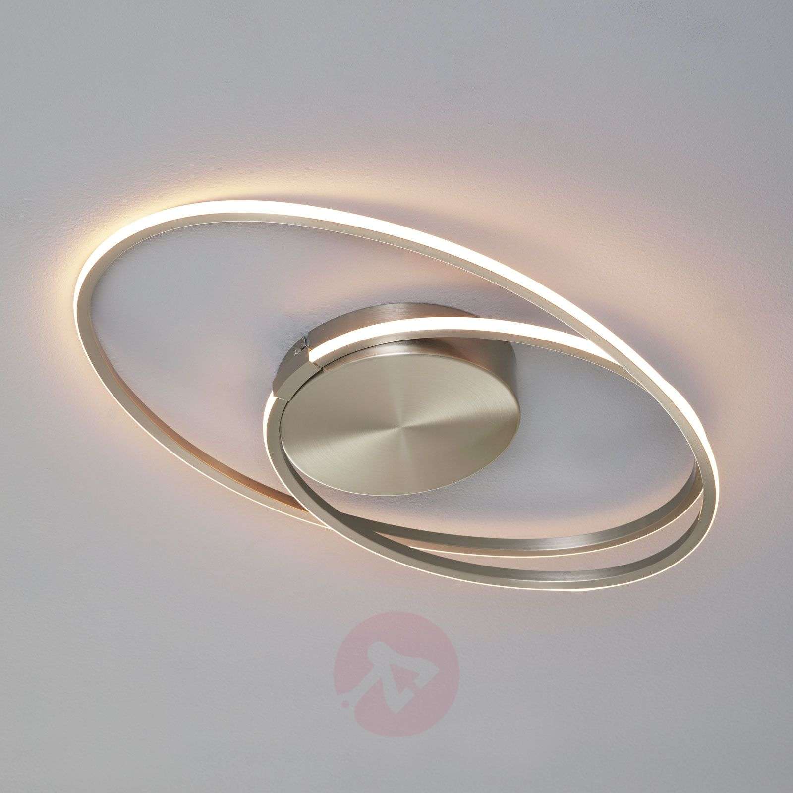 Lampa sufitowa LED Ophelia - pierścieniowa i nowoczesna Z okrągłej rozety sufitowej wyłania się podstawa zakrzywiona w dwa pierścienie. Na zewnątrz pierścieni znajdują się paski z tworzywa sztucznego, za którymi ukryte są diody LED. Światło o barwie ciepłej bieli zapewnia przyjemne oświetlenie dookoła. W połączeniu z nowoczesnym wyglądem Ophelia jest odpowiednią lampą sufitową dla nowocześnie urządzonych pomieszczeń mieszkalnych. - 3-stopniowa, ściemniana za pomocą przełącznika ściennego Klasa efektywności energetycznej: A+