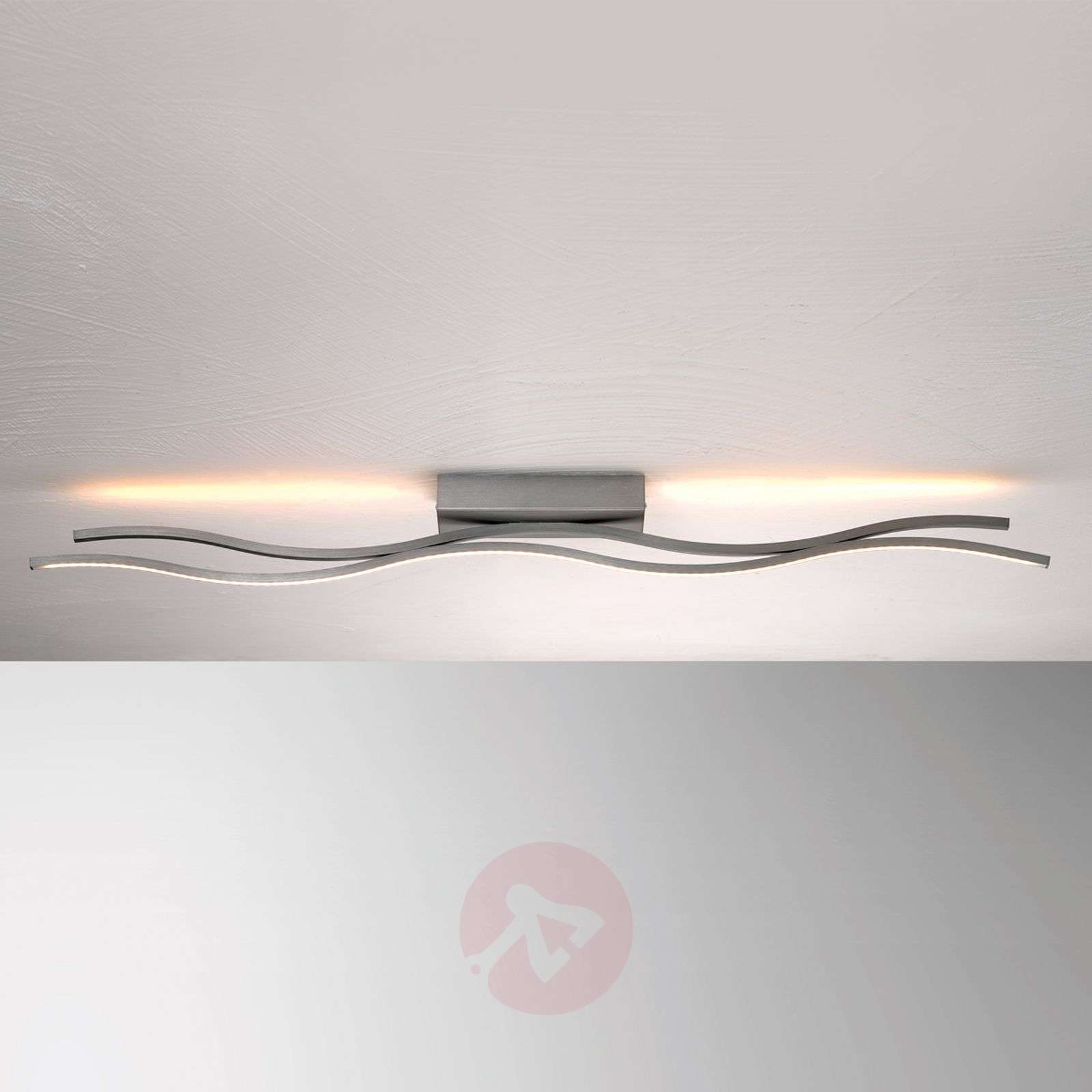 Stylowa lampa sufitowa z przyciemnianymi diodami LED Oba profile LED tej lampy sufitowej Soft są wygięte w łagodne fale i zamontowane tak, że lekko na siebie nachodzą. Światło emitujące z taśm LED wbudowanych w aluminiowe w kolorze antracytowym promieniuje nie tylko w dół, ale również w górę na sufit, dzięki czemu zapewnia oświetlenie pośrednie. Diody LED są również ściemniane, tzn. ich jasność można je regulować w jaskrawości za pomocą standardowego ściemniacza ściennego, dostępnego w handlu. Design tej lampy sufitowej wyraża elegancką prostotę i powściągliwość, co jest szczególnie cenione w nowoczesnych i purystycznie urządzonych pomieszczeniach mieszkalnych. Firma BOPP produkuje lampy wyłącznie w Niemczech. Klasa efektywności energetycznej: A+