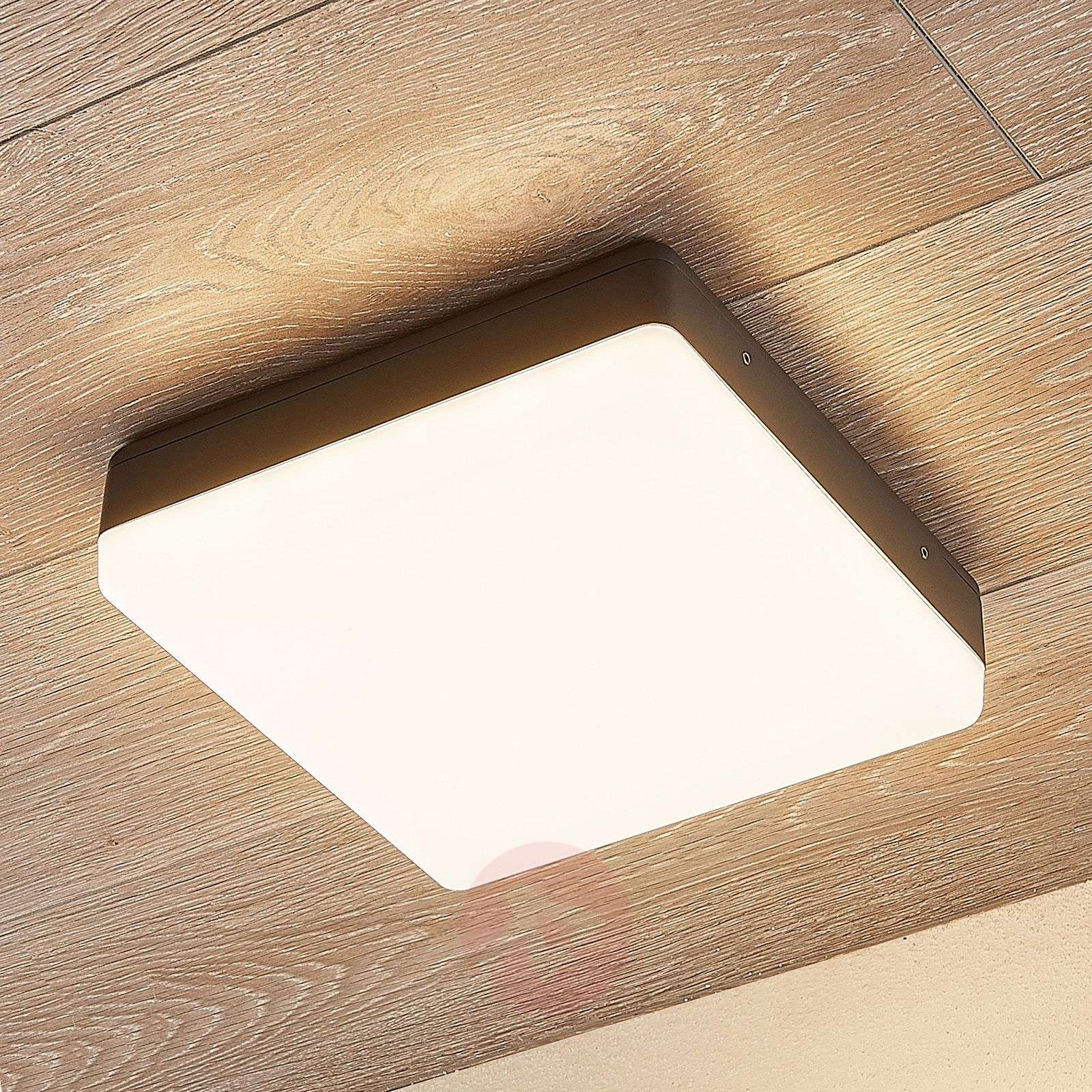 Duża lampa sufitowa LED Thilo w kolorze szarym Szara lampa sufitowa LED Thilo zapewnia przekonujące efekty świetlne, do których wykorzystano jasne światło. Design jest elegancki i powściągliwy, opiera się na liniach prostych i ponadczasowych kształtach, które dyskretnie wkomponowują się w różne style. 24 żarówki LED emitują swe światło przez duży kwadratowy dyfuzor PC, kierując je na określone powierzchnie przestrzeni na zewnątrz budynku. Lampa ma elastyczne mocowanie i może być zamontowana na ścianie lub też na suficie. Ta lampa, mająca obudowę z aluminiowego odlewu ciśnieniowego, jest ponadto odporna na działanie czynników atmosferycznych, a jako że jest szara, zawsze będzie modna. Klasa efektywności energetycznej: A+