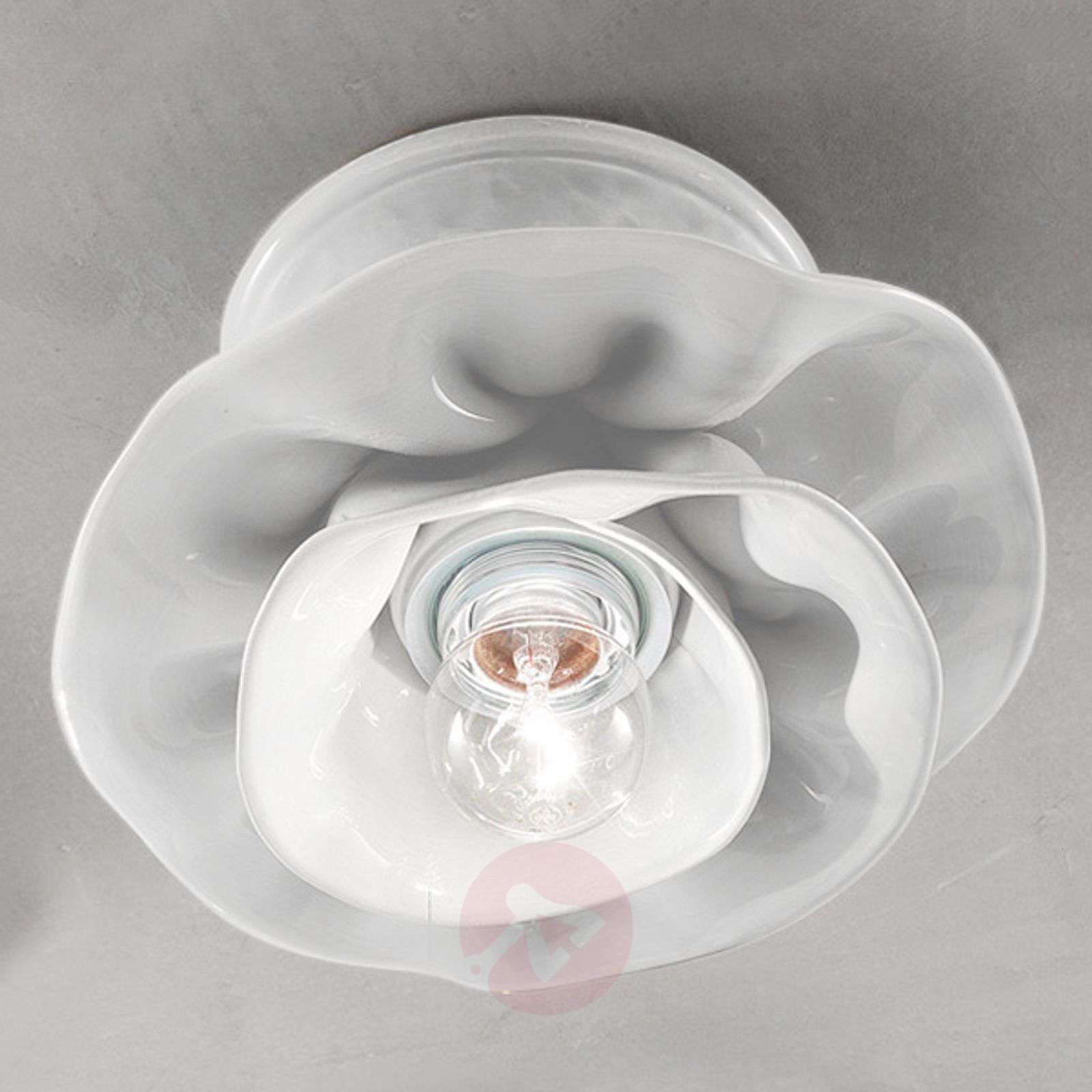 Fascynująca gra światła i cienia na kwiecie i w nim - lampa sufitowa Marco Wspaniały wygląd tej lampy sufitowej dostrzeże natychmiast każdy miłośnik motywów kwiatowych i klasycznych: Niczym kielich kwiatowy lampa Marco wystaje z sufitu i urzeka błyszczącym wykończeniem powierzchni ceramiki. Przy tym lampa ta ma szczególnie interesujący i niezwykle plastyczny wygląd dzięki swojemu osobliwemu oświetleniu. Częściowo ukryta żarówka tworzy interesujący cień pomiędzy różnymi warstwami obudowy. Falisty kształt części kwiatu wywołuje trwałe wrażenie na każdym obserwatorze. Ta lampa sufitowa robi przy tym wrażenie prawie w każdym wnętrzu, przede wszystkim, jeżeli ma ono być ozdobione i oświetlone klasycznym, kwiatowym lub niezwykle pięknym elementem oświetlenia. Ta lampa nadaje się także do montażu na ścianie. Klasa efektywności energetycznej: A++